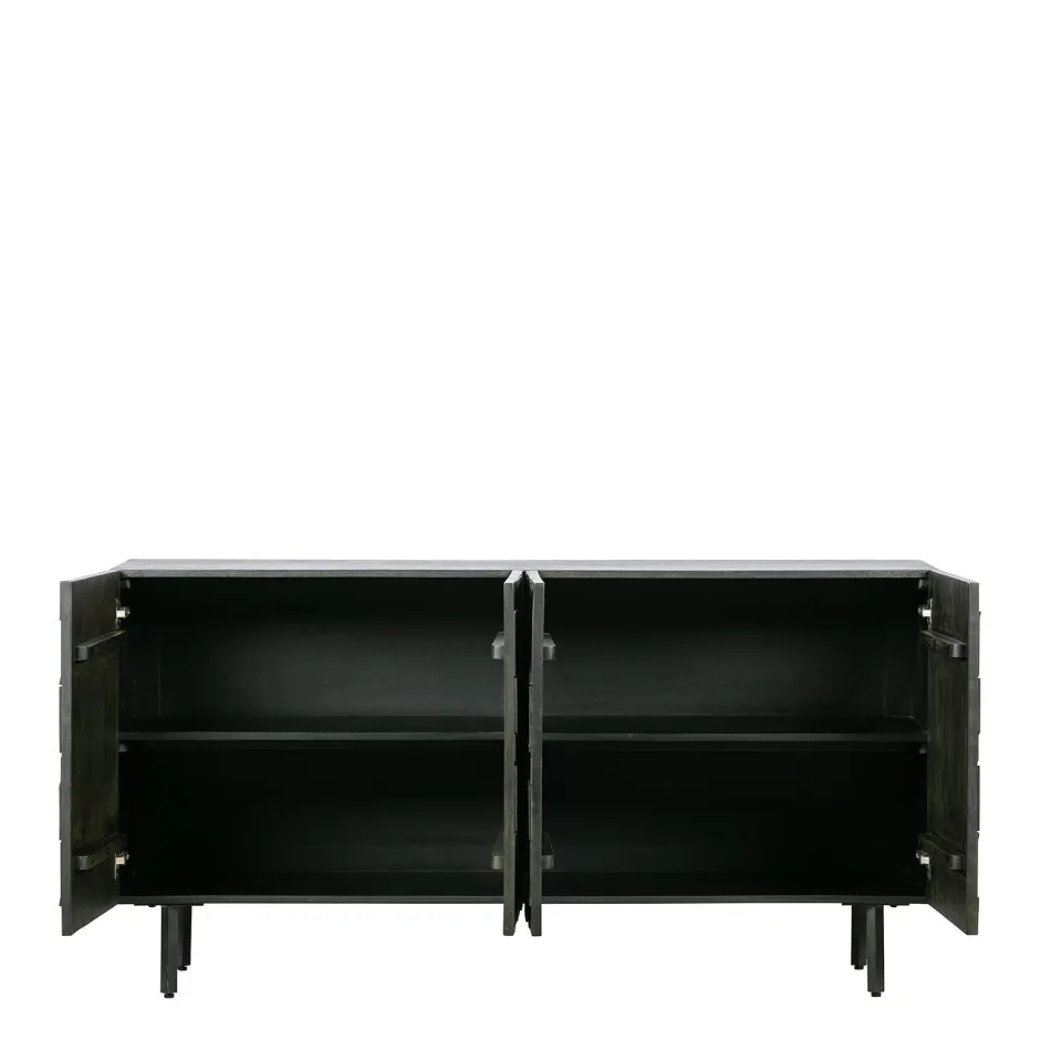 Bepurehome Counter Dressoir 160X83X40 Cm (Bxhxd) Met Dit Dressoir Plaats Je Een Echte Eyecatcher In Huis! Het Opvallende Houtsnijwerk Op De Deuren Trekt De Aandacht En Blijft Boeien. Elk Dressoir Heeft Zijn Eigen Houtstructuur In Het Snijwerk, Wat Elk Item Uniek Maakt. Het Counter Dressoir Komt Uit De Collectie Van Het Nederlandse Merk Bepurehome En Is Vervaardigd Uit Robuust Mangohout. Achter De Vier Deuren Schuilt Een Zee Van Opbergruimte. Deze Ruimte Is Opgedeeld Door Twee Horizontale Planken, Deze Planken Kunnen Verwijderd Worden Maar Is Niet Verstelbaar. Het Dressoir Heeft Een Totale Hoogte Van 83 Cm, Is 160 Cm Breed En 40 Cm Diep. De Metalen Poten Hebben Een Hoogte Van 18 Cm. Het Metalen Frame Is 2X2 Cm Dik. De Vier Deuren Met Houtsnijwerk Zijn 65 Cm Hoog, 39,5 Cm Breed En 2 Cm Dik. De Deurtjes Beschikken Over Een Softclose Systeem. De Inhoud Van De Kast Is In Twee Grote Vakken Verdeeld Met Elk Een 78 Cm Brede Legplank. Deze Legplank Heeft Een Diepte Van 33,5 Cm, Aan De Achterzijde Is Een Kier Van 1,5 Cm Dus Kleine Items Kunnen Op De Onderste Plank Belanden. De Open Vakken Hebben In Een Inhoud Van (Hxbxd) 30X78X35 Cm. Onder De Poten Zitten Levelers, Zodat Het Dressoir Waterpas Gesteld Kan Worden. Het Dressoir Weegt 48 Kg. Het Draaggewicht Van Counter Is 35-40 Kg. Elke Plank Kan Maximaal Belast Worden Met 10 Kg.