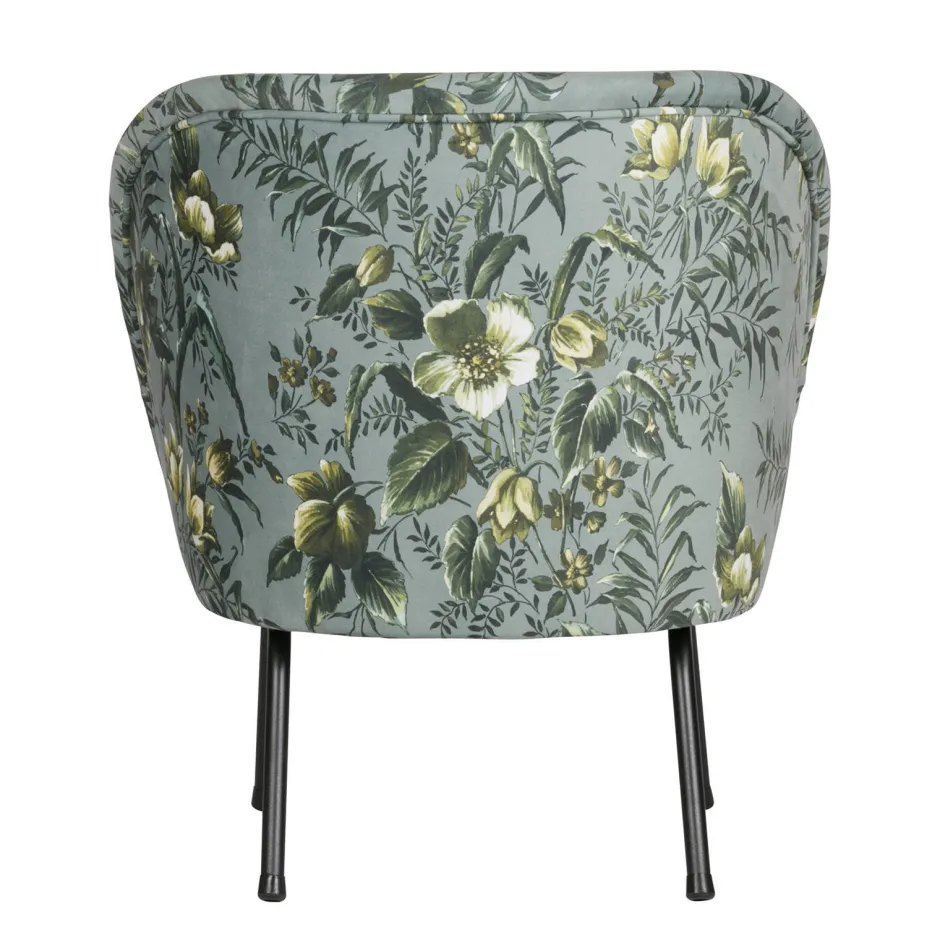 De Vogue Fauteuil Is Bekleed Met Een Zachte Velours (Fluwelen) Stof. De Stof Is Grijs En Voorzien Van Een Vintage Bloemenprint. Samen Met De Ronde Vormen Van Deze Stoel Zorgt Dit Voor De Vintage Uitstraling Van De Vogue. De Slanke Pootjes Van Zwart Metaal Maken Deze Fauteuil Helemaal Van Nu. Kunststoffen Dopjes Beschermen Je Vloer Tegen Beschadigingen.
