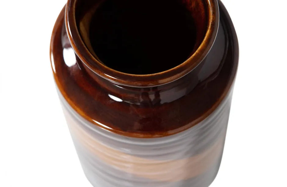 Deze Retro, Klassieke Decennia Vaas Komt Uit De Collectie Van Het Nederlandse Merk Bepurehome. Decennia Is Vervaardigd Uit Keramiek En Heeft Een Opvallend Kleurverloop. De Gebruikte Kleuren Hebben Dezelfde Kleurtoon En Lopen Mooi In Elkaar Over, Dit Geeft Een Sfeervolle Uitstraling.Materiaalkeramiek Wordt Gevormd Uit Geboetseerde, Afgebakken Klei. De Keramieken Items Uit Onze Collecties Worden Met Een Matte Of Glanzende Laag Geglazuurd, Dit Zorgt Voor Een Opvallend Uiterlijk En Een Extra Bescherming Van Het Materiaal. Onze Keramieken Items Zijn Geschikt Voor Indoor En Outdoor, Maar Zijn Niet Bestand Tegen Harde Regenval En Vorst. Keramiek Is Uiterst Hittebestendig Maar Kan Bij Een Ruige Omgang Redelijk Poreus Zijn, Een Zorgzame Onderhoud Is Daarom Aangeraden.Afmetingende Rand Van De Vaas Heeft Een Dikte Van 1 Cm. De Bovenzijde Van De Vaas Heeft Een Diameter Van 10 Cm En De Opening Van De Vaas Heeft Een Diameter Van 7 Cm. Het Patroon Van De Decennia Vaas Kan Afwijken Van De Foto, Dit Komt Omdat Elk Item Handgemaakt Is En Daardoor Dus Ook Uniek.Onderhoudkeramieken Items Zijn Eenvoudig Schoon Te Houden Middels Een Lauwwarm Sopje Met Neutrale Zeep En Een Zachte Doek. Het Nadrogen Van Het Oppervlak Zorgt Voor Een Streeploos Resultaat. Is Het Keramiek Beschadigd? Je Kunt Krassen Opvullen Met Een Reparatievloeistof Voor Keramiek, Maar Dit Geeft Echter Geen Onzichtbaar Resultaat.Leveringhet Artikel Wordt Per Vier Stuks Geleverd Met Een Minimale Afname Van Acht Stuks. Plaats Aan De Onderzijde Kleine Viltglijders, Dit Voorkomt Beschadigingen Aan Het Oppervlakte.