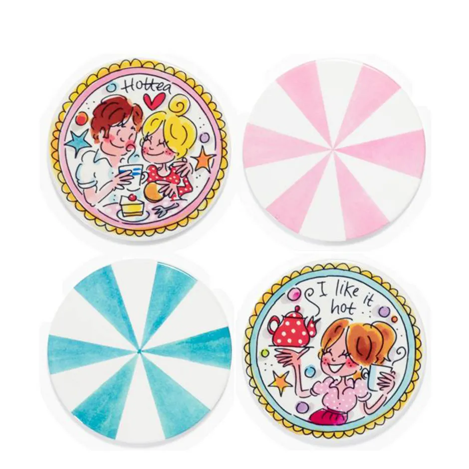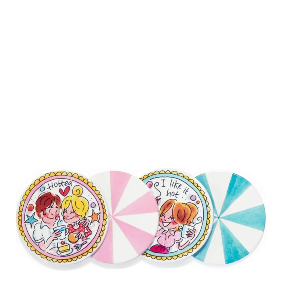 De Collectie Even Bijkletsen Is Nog Steeds De Grote Favoriet Van Vele Blond-Liefhebbers. Nieuw In Deze Collectie Zijn De Aardewerk Onderzetters. Ben Je Op Zoek Naar Een Leuk Cadeau Voor Een Housewarming, Verjaardag Of Andere Gelegenheid? Verras De Gelukkige Met Een Set Van 4 Originele Onderzetters. De 4 Onderzetters Zitten In Een Mooi Doosje Verpakt. Op Twee Staan Leuke, Vrolijke Tekeningen En Teksten ‘I Like It Hot’ En ‘Hottea’. De Andere Twee Zijn Vrolijk Gestreept In Roze En Groen. Deze Onderzetters Zijn Gemaakt Van Aardewerk En Hebben Kurk Als Onderkant. Niet Vaatwasmachinebestendig.