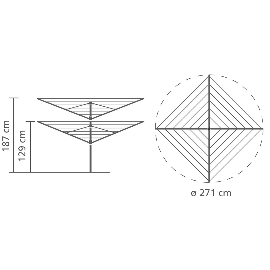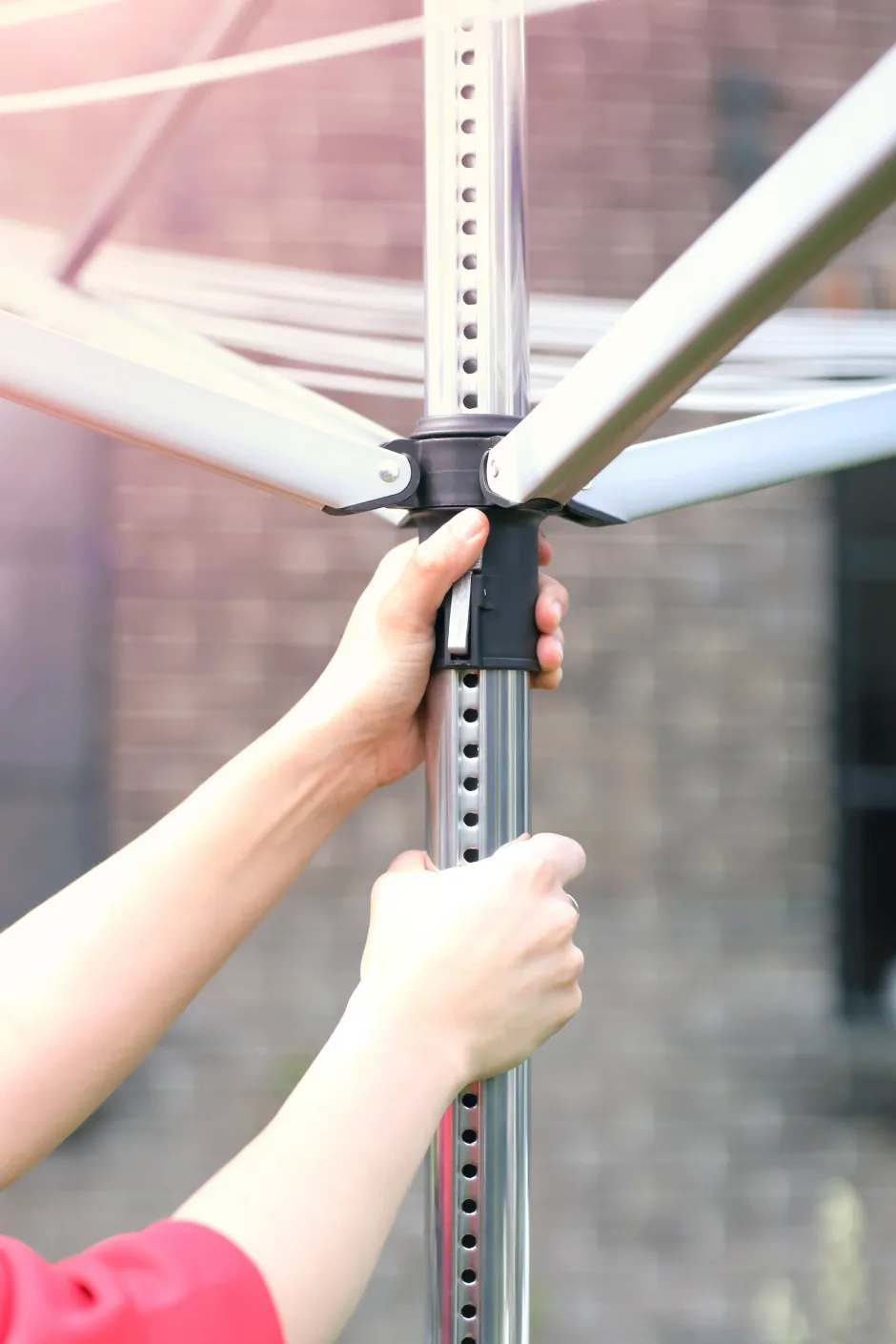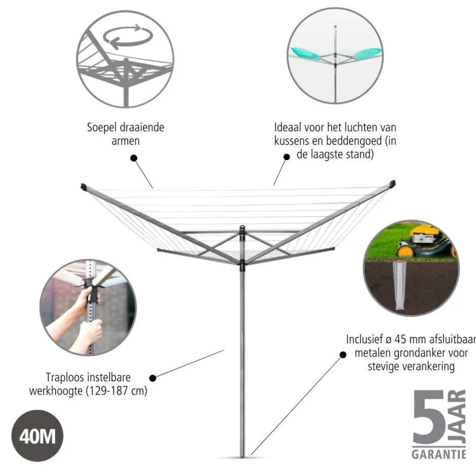 – Slim ‘Lift-O-Matic’ Systeem Om De Droogmolen Traploos In Te Stellen Op Uw Ideale Werkhoogte (Van 129 Tot 187 Cm) En Altijd Strakke Drooglijnen