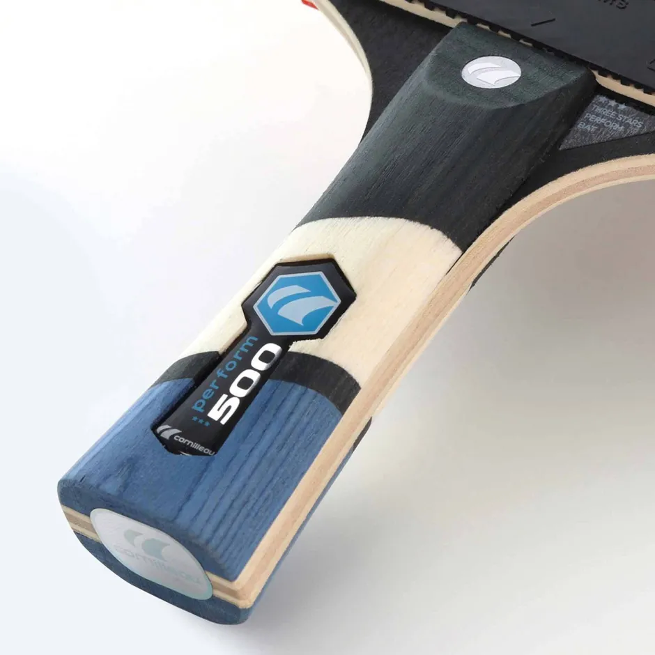 Het Cornilleau Perform 500 Indoor Tafeltennisbatje Heeft Een Nieuw Uiterlijk Gekregen En Is Nu Uitgevoerd In Zwart Met Wit En Blauw. Het Speelcomfort En De Speel Kwaliteit Van Het Tafeltennisbatje Zijn Gelijk Gebleven. De Aero-Technologie In De Perform 500 Bat Biedt Een Uitstekend Contact Met De Bal. De Krachtige Grip En Het 3 Sterren Ittf Rubber Garanderen Een Consistente Baan En Spin Met Elke Slag. Het 1,8 Mm Dikke Dynamische Schuim Zorgt Voor Een Goede Speel Snelheid. Het Cornilleau Perform 500 Batje Is Ideaal Voor De All/Off+ (Allround/ Snelle) Speler!