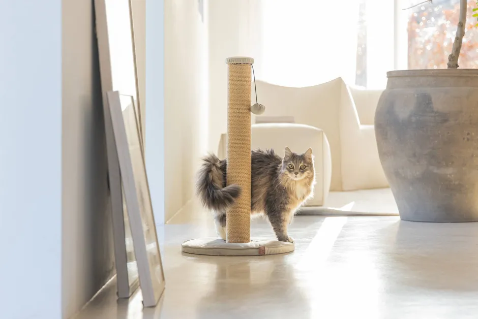 Designed By Lotte Krabpaal Yenna, Zal Prachtig Staan Binnen Ieder Interieur. Deze Krabpaal Beschikt Namelijk Over Een Voet Die Voorzien Is Van Zacht Fluweel. De Krabstam Is Omwikkeld Met Jute Touw. Jouw Kat Zal Er Erg Graag Zijn Of Haar Nagels In Willen Zetten. Een Krabpaal Staat Niet Alleen Mooi In Huis, Maar Het Is Ook Nodig Om Deze Aan Jouw Kat Aan Te Bieden. Een Krabpaal Zorgt Er Namelijk Voor Dat Jouw Kat, Zijn Of Haar Nagels Kan Verzorgen. Iets Wat Ze Van Nature Graag Doen. Bovendien Kan Een Krabpaal Voorkomen Dat Jouw Kat Zijn Of Haar Nagels Gaat Slijpen Aan Meubels Of Tapijt. Het Spelen Met Deze Designed By Lotte Krabpaal Yenna Wordt Nog Leuker Door Toevoeging Van Het Kattenspeeltje In De Vorm Van Een Fluwelen Bolletje, Die Aan De Krabpaal Bevestigd Is.
