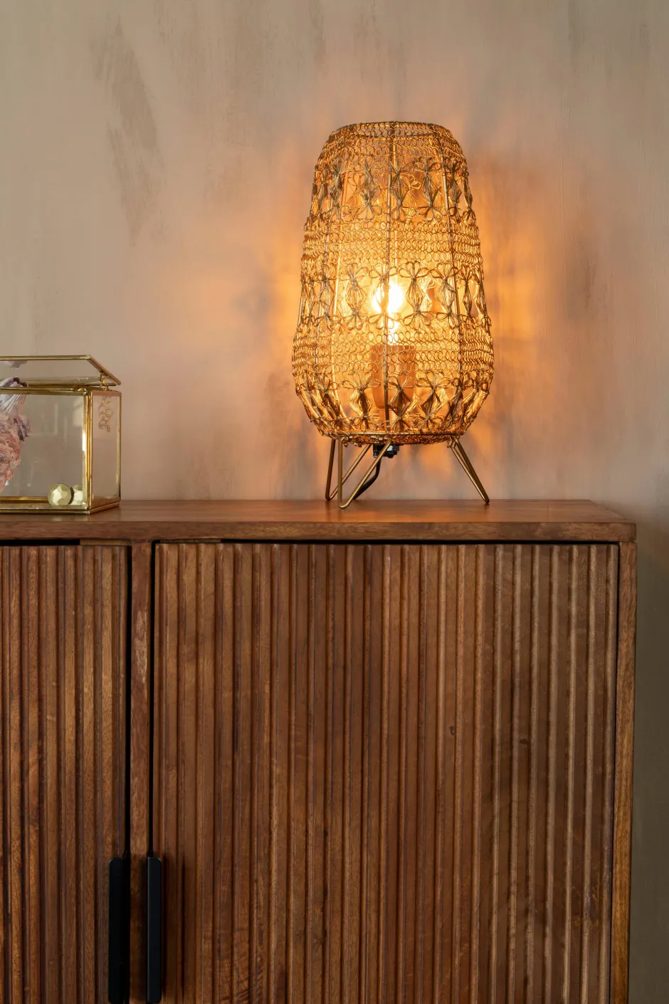 Een Vleugje 1001-Nacht, Gecombineerd Met Macrame-Kunsten En Dan Uitgevoerd In Dun Metaaldraad. Dat Is Tafellamp Filo Van Dutchbone. Een Tafellamp Met Een Oosters Sfeertje. Deze Tafellamp Is Met De Hand Geknoopt Van Messingkleurig Metaaldraad. De Filo Lamp Is Verkrijgbaar In Drie Maten. De Grootste Zou Ook Een Vloerlamp Kunnen Zijn. Tip: Kijk Ook Eens Naar De Andere Filo Producten Van Dutchbone.