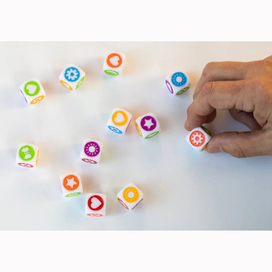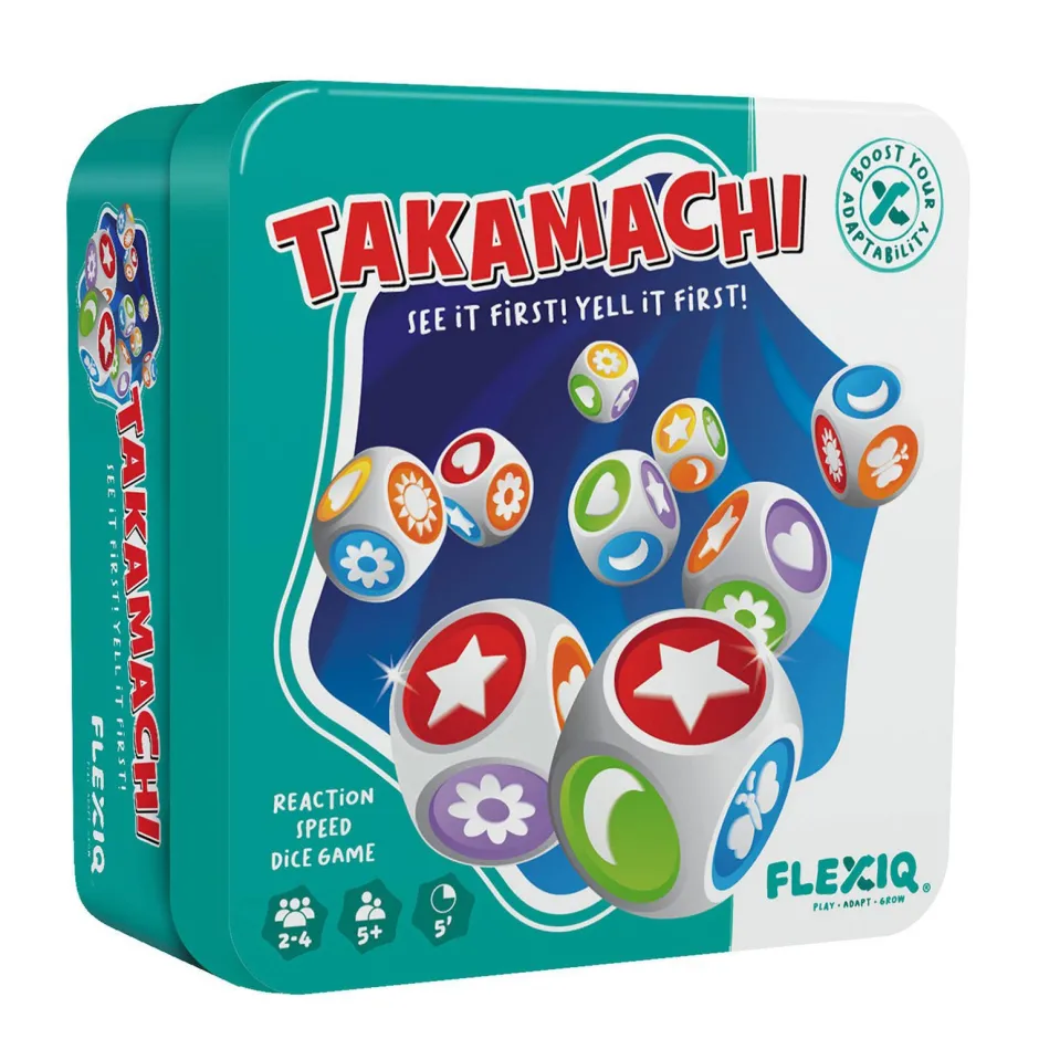 Takamachi Is Een Reactiedobbelspel Waarbij Je Goed Moet Opletten Wat Er Gedobbeld Wordt! Verdeel De 12 Dobbelstenen Gelijk Over De Spelers. Rol Deze Nu Allemaal Tegelijk En Probeer Als Eerste Om De Vorm Of De Kleur Te Vinden Die Het Meeste Voorkomt. Roep Je Antwoord En Draai De Zandloper Om!De Andere Spelers Hebben Nu 10 Seconden Om Een Vorm Of Kleur Te Vinden Die Vaker Voorkomt. De Winnaar Van De Ronde Mag Nu Een Van Zijn Dobbelstenen Uit Het Spel Verwijderen. Speel Zo Verder Tot Een Speler Al Zijn Dobbelstenen Weg Kan Spelen.De Speler Die Als Eerste Geen Dobbelstenen Meer Heeft, Wint Het Spel!Takamachi Is Een Supersnel, Leuk En Verrassend Dobbelspel Voor De Hele Familie.