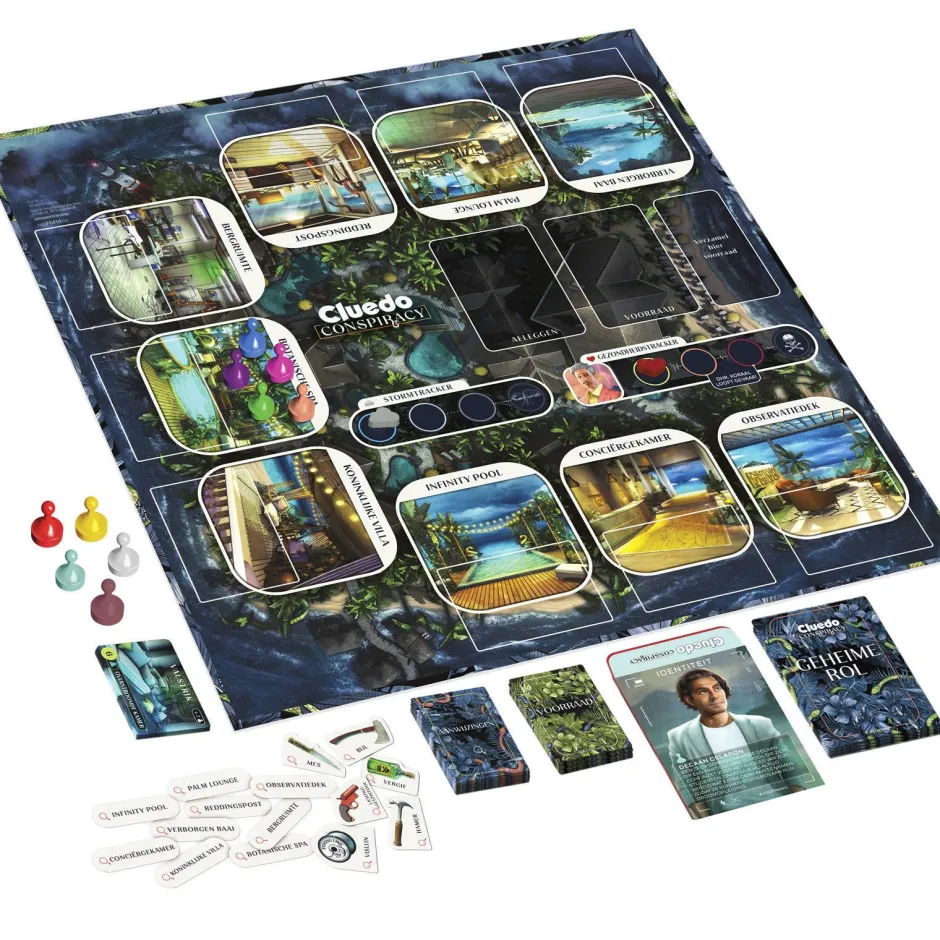 Het Spel Cluedo Conspiracy Is Een Spel Vol Geheime Rollen En Veranderende Vermoedens! Als Gast Op Het Luxe Zwarte Adder Resort, Ontdek Je Dat Iemand (Misschien Jijzelf Wel!) De Manager, Dhr. Koraal, Wil Vermoorden. Verspreid Op Het Resortterrein Zijn Dodelijke Valstrikken Geplaatst – En Iemand Is Gewapend! Jij Moet Nu Het Ultieme Mysterie Ontrafelen: Wie Kun Je Vertrouwen? In Dit Spel Vol Bedrog En Logisch Redeneren, Spelen Spelers Als Cluedo-Personages En Nemen Ze Geheime Rollen Aan In Vijandige Teams. De Vrienden Werken Samen Om Dhr. Koraal Te Redden En Het Wie, Waar En Wat Over Het Geheime Complot Van De Conspiracy Te Onthullen. De Conspiracy-Leden Proberen De Acties Van De Vrienden Te Saboteren En De Moord Uit Te Voeren Op Een Specifieke Locatie, Met Een Specifiek Wapen. Beide Teams Vinden Ook Aanwijzingen Om Te Delen – Of Niet! Wie Wint? Dit Spannende Strategische Spel Voor 4-10 Spelers Is Een Leuk Groepsspel Voor 14+. Een Geweldig Cadeau Voor Liefhebbers Van Misdaadverhalen, Spellen Met Geheime Rollen En Het Klassieke Cluedo-Spel. Cluedo En Hasbro En Alle Gerelateerde Kenmerken Zijn Handelsmerken Van Hasbro.