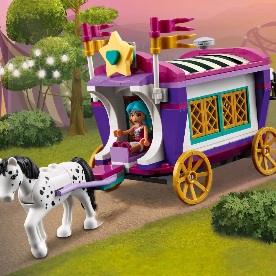 Ben Je Op Zoek Naar Een Cadeau Voor Kinderen Dat Van Maffe Voertuigen Houdt? Verras Ze Met De Lego Friends Magische Caravan (41688) Kermisset Voor 7 Jarige Kinderen. Deze Voordelige Speelset Van De Lego Friends Serie Bevat Een Caravan Voertuig, Een Waarzegsterstent, 2 Minipoppetjes En Figuren Van Een Paard En Een Uil.De Huifkar Zit Vol Traditionele Kenmerken, Zoals De Schattige Rasterluiken En De Ouderwetse Lantaarn. Het Dak Kan Open, Zodat Kinderen Gemakkelijk Bij Het Woongedeelte Kunnen. Binnenin Vinden Ze Een Bed, Een Keuken Met Een Fornuis En Een Tafel Waaraan Ze Kunnen Eten. Ze Kunnen Het Paard Verzorgen Of Met De Uil Spelen. In De Tent Staat Een Glazen Bol. Draai Hem Rond Om Mia’S Toekomst Te Voorspellen. Kinderen Kunnen Kiezen Of Er Een Blij Of Verdrietig Gezicht Verschijnt… Of Het Lot Laten Beslissen.Laat Kleine Bouwers Kennismaken Met Heartlake City Speelgoed: Een Wereld Vol Realistische Rollenspellen. Met Lego Friends Sets Ontdekken Kinderen Waar Hun Passies Liggen, Samen Met Leuke Personages.De Caravan Is Ca. 11 Cm Hoog En 24 Cm Lang. De Tent Is Ca. 11 Cm Hoog En 8 Cm Breed.Bevat 348 Stenen.
