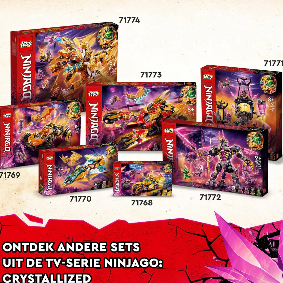 Met Lego Ninjago Cole’S Drakenwagen (71769) Kunnen Kinderen Vanaf 8 Jaar Allerlei Leuke Scenes Uit De Ninjago: Crystallized Naspelen Met Coole Voertuigen, Ninja’S En Schurken Uit De Tv-Serie. Dit Leuke Auto Speelgoed Bestaat Uit Een Vervaarlijk Ninjavoertuig En 4 Lego Ninjago Poppetjes: Gouden Draak Kai Met Zijn Elementwapen En Een Set Gouden Drakenvleugels Met Scherpe Punten, Gouden Cole, Generaal Aspheera De Slang Met Een Kristalwapen, En Een Wraakstenen Bruut Met Een Zwaard. De Lego Ninjago Auto Heeft Indrukwekkende Gouden Bliksemzwaarden Die Je Naar Voren Kunt Duwen Voor De Drakenaanvalsmodus, 2 Noppenschieters, 4 Grote Banden En Zitplaatsen Voor Een Passagier En Een Bestuurder. Ninjago Speelgoed Neemt Kinderen Mee Naar Een Spannende Fantasiewereld Boordevol Actie Waar Ze Het Samen Met Cole, Kai, Nya En De Rest Van Het Ninjateam Kunnen Opnemen Tegen Allerlei Gevaarlijke Schurken. Ze Beleven Urenlange Avonturen Met Een Uitgebreide Collectie Speelsets Met Onder Andere Mecha, Auto’S, Draken En Tempels. Laat Kinderen Vanaf 8 Jaar In De Schoenen Van Echte Ninja’S Stappen En Verras Ze Met Dit Leuke Cadeau Voor Een Verjaardag, Kerst Of Een Andere Speciale Gelegenheid. Afmetingen: De Ninja-Auto Is Ca. 12 Cm Hoog, 26 Cm Lang En 14 Cm Breed. Bevat 384 Onderdelen