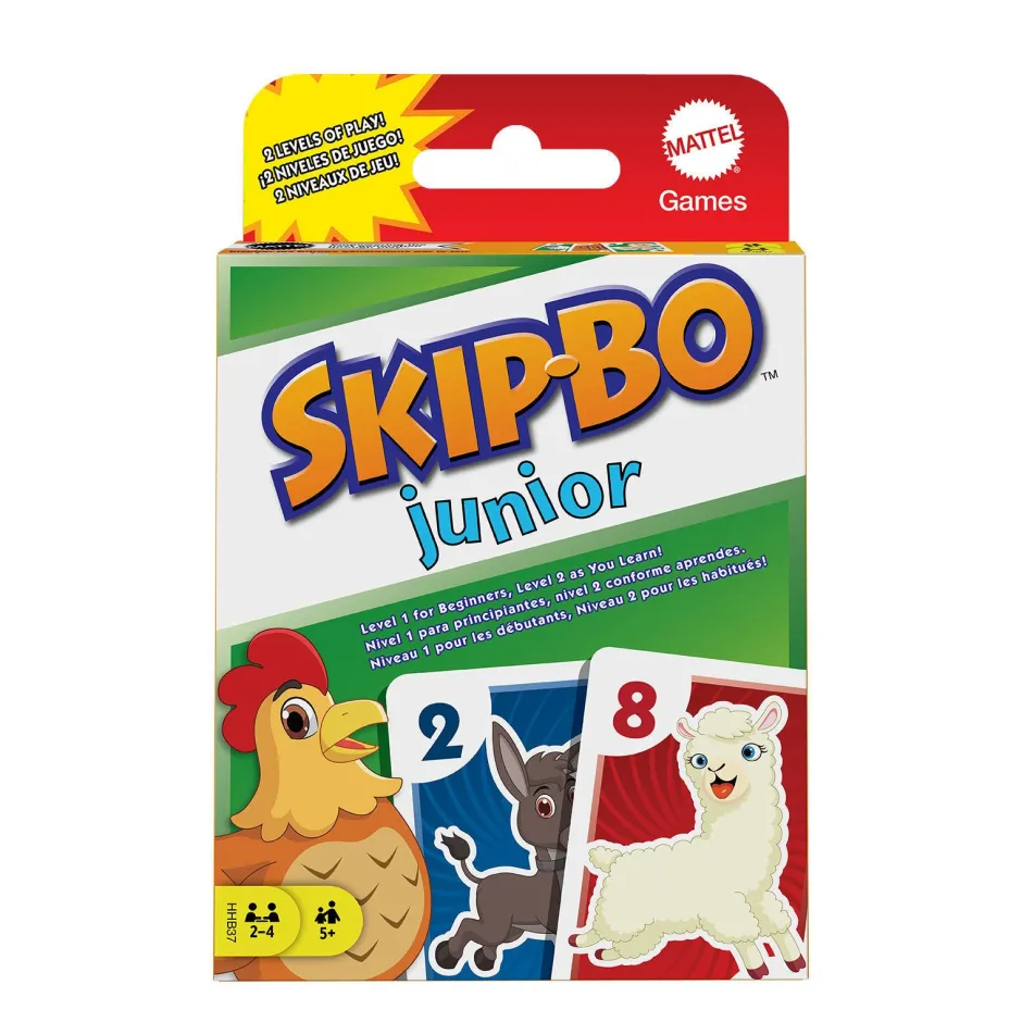 Skip-Bo Junior Is Een Kaartspel Van De Makers Van Uno®, Met Vrolijke Kleuren En Leuke Plaatjes Van Dieren. Het Spel Is Eenvoudig En Kindvriendelijk; Wie Als Eerste Al Zijn Kaarten Heeft Weggespeeld, Wint. En Bij Deze Versie Zijn Er 2 Niveaus! Spelers Leggen Slim En Strategisch Passende Kaarten Van 1 Tot 10 Op De Stapels In Het Midden Van Het Speelveld En De Eerste Speler Die Al Zijn Kaarten Heeft Weggespeeld, Wint. Op Het Tweede Niveau Worden Aflegstapels Toegevoegd Aan De Mix, Zodat De Uitdaging Groter Wordt Naarmate Kinderen Beter Gaan Spelen. Een Geweldig Cadeau Voor Kinderen Vanaf 5 Jaar Die Van Kaartspelletjes Houden. Kleuren En Versieringen Kunnen Varieren.
