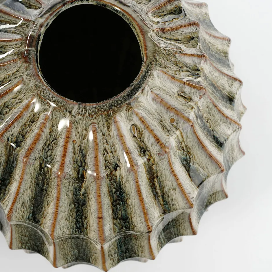 Verfraai Je Huis Met De Pippa Vaas Van Mica Decorations, Of Je Nu Kiest Voor Bloemen Of Niet. De Vaas Is Handgemaakt Van Stevig Keramiek, Prachtig! Door De Warme, Groen/Beige Kleur En Het Unieke Design Springt Deze Vaas Direct In Het Oog. De Pipa Collectie Bestaat Uit Meerdere Vazen In Verschillende Kleuren, Maten En Kunnen Ook Leuk Met Elkaar Gecombineerd Worden. Deze Groene Vaas Is 33 Cm Hoog En Heeft Een Diameter Van 27 Cm. Door De Smalle Opening Van 7,5 Cm Is De Vaas Geschikt Voor Een Paar Losse Bloemen, Siertakken Of Droogbloemen. Ideaal Voor Op Tafel! Waar Zet Jij Deze Keramieken Vaas Neer?
