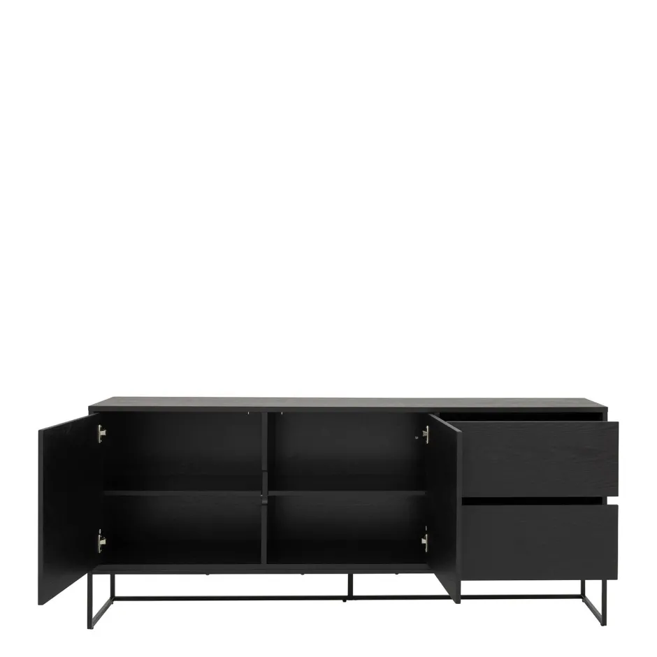 Het Dressoir Lipp Is Uitgevoerd In Zwart Essenfineer Met Een Prachtige Structuur. De Handgrepen Zijn Gesneden Uit Het Frame. Dit Geeft Het Meubel Een Elegante Look. Het Dressoir Past Goed Binnen De Scandinavische Woonstijl. Het Dressoir Lipp Is Voorzien Van Twee Deuren En Twee Lades. Genoeg Opbergruimte Voor Al Je Spullen..