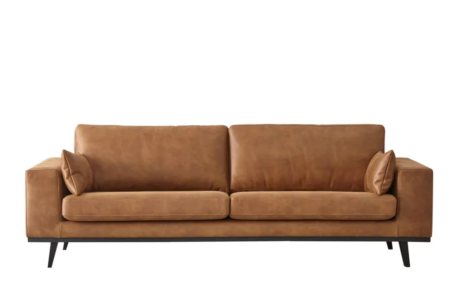 Deze Torino Is Bekleed Met Gerecycled Leer In De Kleur Cognac. Dit Materiaal Heeft Een Warme Uitstraling En Draagt Bij Aan De Luxe Look Van Deze Bank. De Slanke, Schuingeplaatste Poten Van Zwart Hout Geven Een Retro Knipoog Aan Deze Eigentijdse Bank En Zorgen Voor Een Ruimtelijk Gevoel In Je Woonkamer. Bij De Torino Worden 2 Bijpassende Sierkussens, Ook In Eco-Leer, Geleverd. Mooi, Maar Ook Fijn Voor Dutjes Op De Bank!