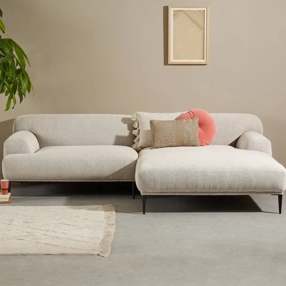 Kom Tot Rust Op Hoekbank Amina! Deze Moderne Bank Wordt Gekenmerkt Door Het Subtiel Afgeronde Design, Wat Zorgt Voor Een Luxueuze Uitstraling. De Amina Bank Wordt Gedragen Door Een Rank Zwart Onderstel Waardoor Er Een Ruimtelijk Effect Ontstaat In Vrijwel Iedere Woonkamer. De Bank Heeft Vaste Rugkussens En Is Bekleed Met Polyester In De Kleur Beige. Dit Maakt De Bank Heerlijk Zacht En Comfortabel. Uniek Aan De Amina Is De Extra Brede Chaise. De Chaise Heeft Een Zitbreedte Van Maar Liefst 99 Cm, Waardoor Je Ook Heerlijk Met Twee Personen Languit Kunt Loungen. Links, Rechts Of Toch Liever Een 3 Zitsbank? Bekijk De Hele Amina Serie Van De Wehkamp Home Collectie.
