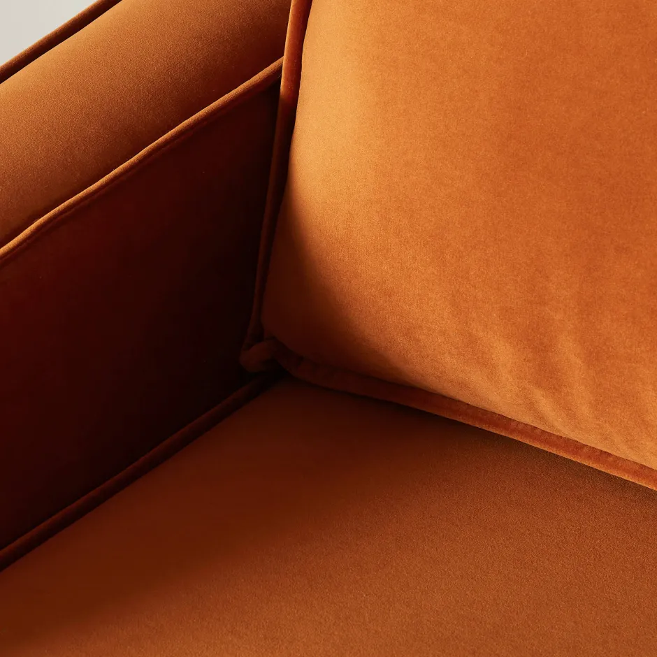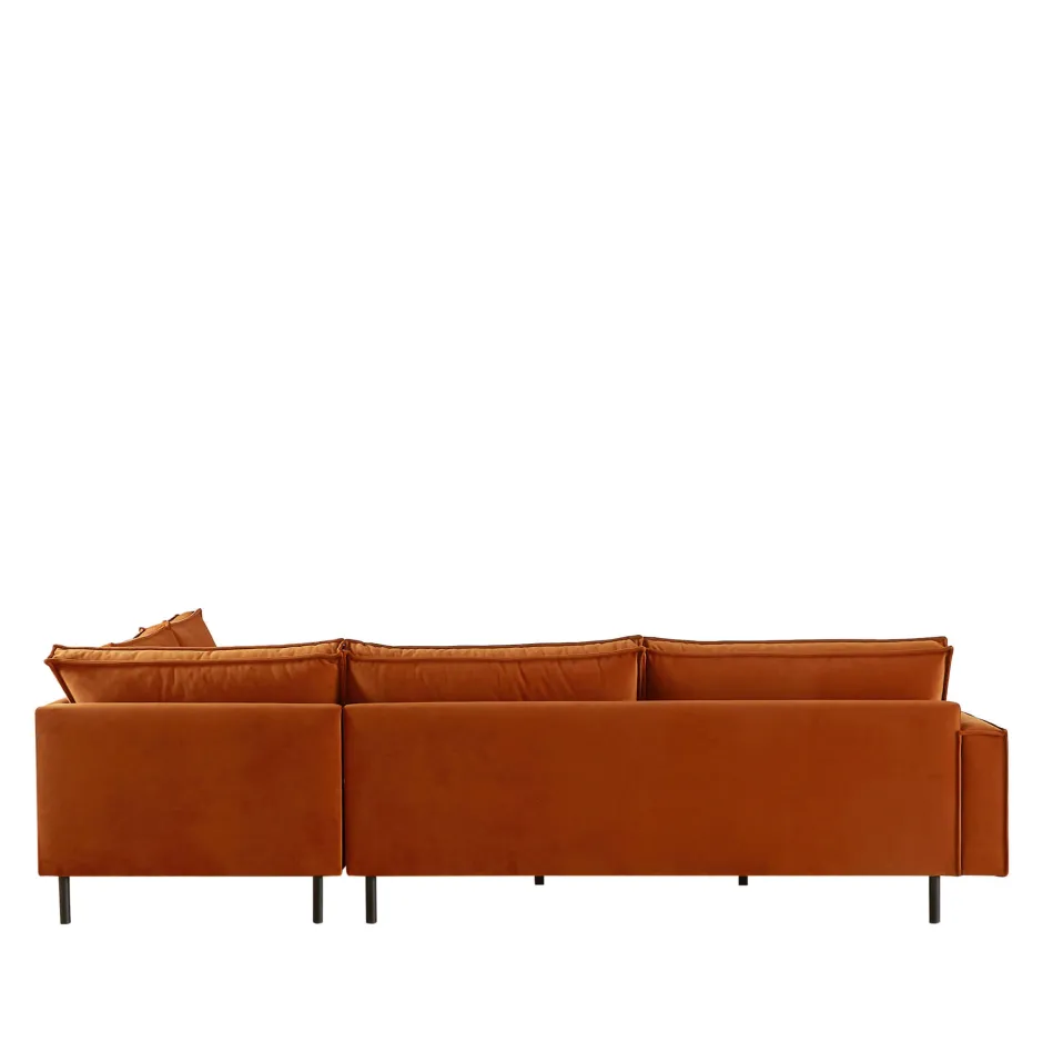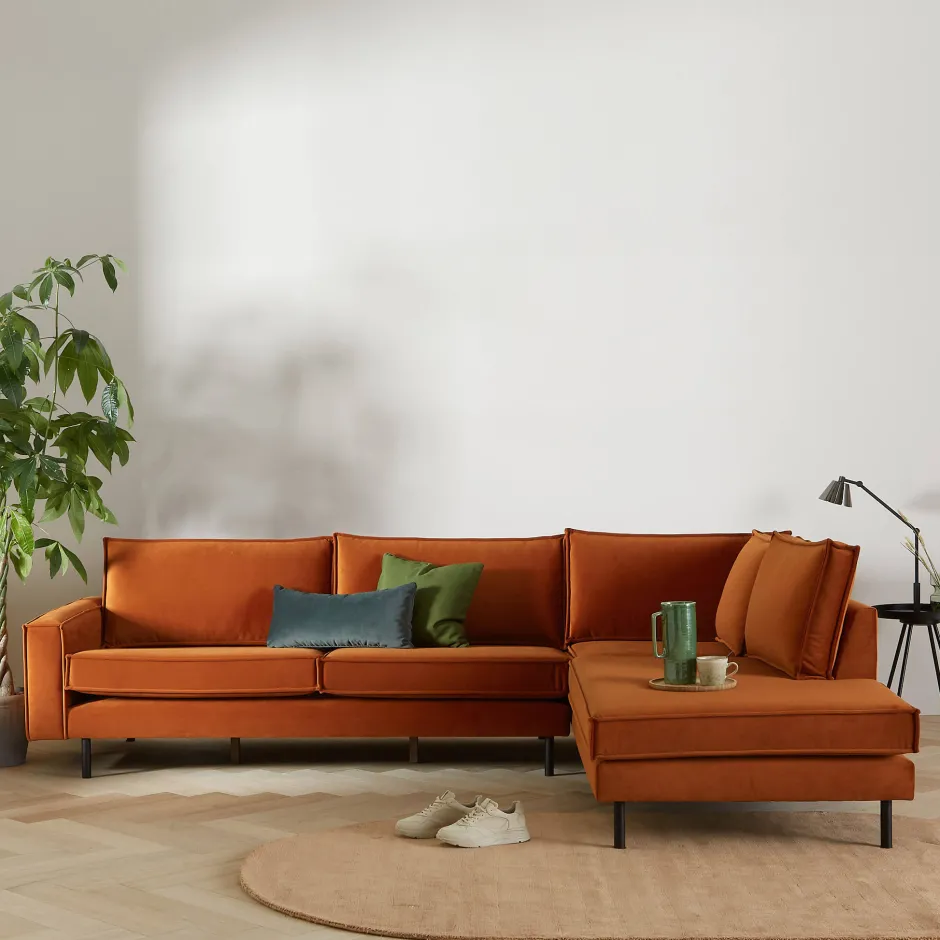 Deze Lexington Hoekbank Is Bekleed Een Heerlijk Zachte Velours Stof In Een Terracotta Kleur. De Chique Uitstraling Van Deze Stof En Terra Kleur Maken Deze Bank Een Echte Statement Piece. De Naar Buiten Gestikte Engelse Naden En Slanke Metalen Pootjes Geven Een Stoer Randje Aan Deze Chique Bank.