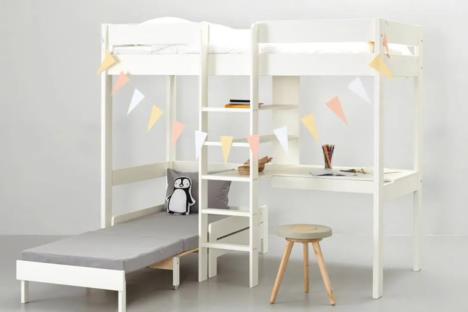Deze Robin Hoogslaper Van Wehkamp Home Is Heel Veelzijdig En Is Een Uitkomst Als Je Klein Behuisd Bent. Het Bed Heeft Middenin Een Ladder Voor Het Slaapgedeelte. Aan De Rechterkant Heeft Het Bed Een Uitklapbare Stoel Die Je Kan Gebruiken Als Er Een Logeetje Komt Slapen En Aan De Rechterkant Een Bureau Met Lade. Het Bureau En De Stoel Kunnen Zowel Links Als Rechts Geplaatst Worden. De Hoogslaper Is Gemaakt Van Scandinavisch Grenenhout In De Kleur Wit. Het Bed Is Inclusief Lattenbodem En Matras Voor De Stoel. Een Matras Voor Het Bed Kun Je Volledig Naar Wens Uitkiezen.