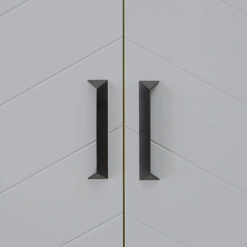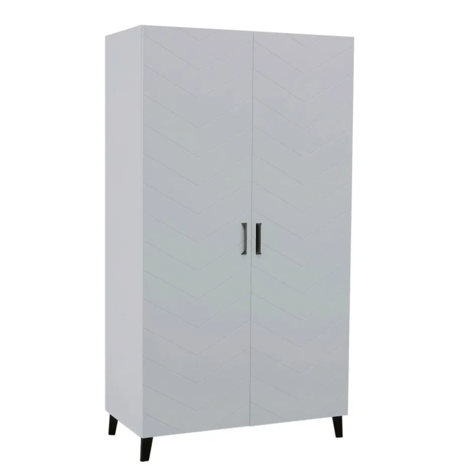 Deze Kledingkast Is Functioneel Om Te Gebruiken In De Slaapkamer En Is Ook Nog Eens Een Echte Blikvanger Door Het Stijlvolle V-Motief. De Kast Heeft Een Leg En Hanggedeelte. Genoeg Ruimte Om Al Je En Kleren En Accessoires In Op Te Bergen! De Deuren Van Kledingkast Zijn Gemaakt Van Mdf En Het Frame Van Mfc. De Kast Is Afgewerkt Met Zwart Metalen Handvaten.