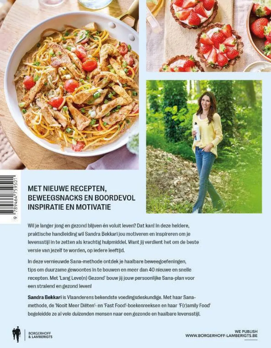 Met ‘Lang Leve(N) Gezond’ Brengt Voedingsdeskundige En Bestsellerauteur Sandra Bekkari Een Vernieuwde Versie Van Haar Sana-Methode, Die De Afgelopen Vijftien Jaar Al Duizenden Mensen Naar Een Gezondere Levensstijl Hielp. De Laatste Jaren Verschenen Er Veel Nieuwe Wetenschappelijke Inzichten Over Voeding, Beweging En Gezondheid. Die Herleidde Sandra Tot Drie Pijlers: Gezond Eten, Slim Bewegen En Optimaal Opladen. In Deze Heldere, Praktische Handleiding Laat Ze Zien Dat Gezond Leven Veel Leuker En Makkelijker Is Dan Je Denkt. Dat Doet Ze Met Haalbare Beweegoefeningen En Tips Om Duurzame Gewoontes In Te Bouwen Die Bij Jou Passen. Daarnaast Stipt De Auteur Ook Het Belang Van Longevity Aan: Hoe Leven We Langer Gezond En Verhogen We Onze Levenskwaliteit. Het Boek Is Doorspekt Met Interessante Bijdrages Van Experten: Dr. Inge Declercq Over Het Belang Van Een Goede Nachtrust, Prof. Reginald Deschepper Over Gezond Ouder Worden En Prof. Dr. Erik Franck Over Gewoonteverandering. Sinds De Succesvolle Reeksen ‘Fast Food’ En ‘Nooit Meer Dieten’ Weten We Dat Snelle Recepten Onmisbaar Zijn In Een Gezonde Levensstijl. ‘Lang Leve(N) Gezond’ Bevat Daarom Meer Dan 40 Gloednieuwe, Heerlijke Gerechten, Die Gemiddeld Binnen Het Halfuur Op Tafel Staan.