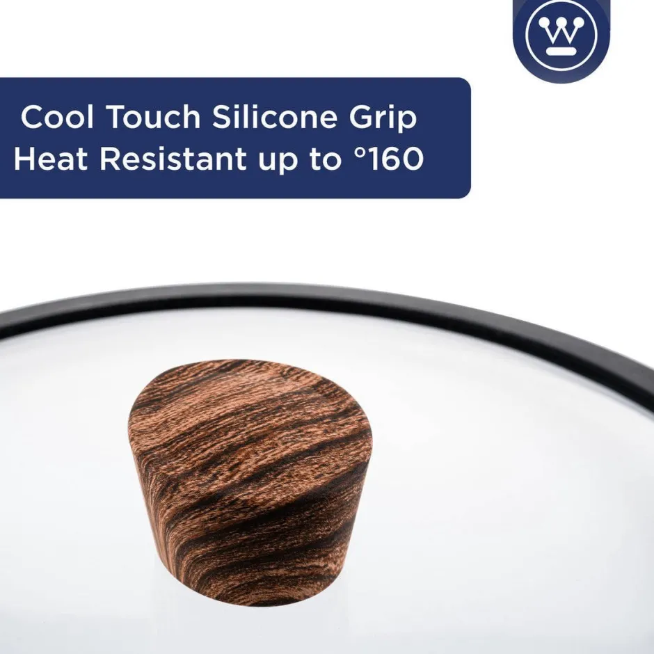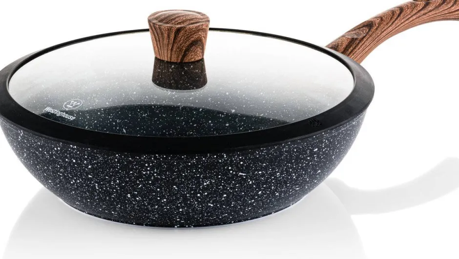 Size: O 30 Cm Geniet Van Een Heerlijke Maaltijd Met De Westinghouse Kookpan Marble Wood O 28 Cm / 8 Liter, De Westinghouse Hapjespan Marble Wood O 28 Cm / 4.5 Liter En De Westinghouse Wokpan Marble O 30 Cm Wood. De Pannen Zijn Gemaakt Van Gesmeed Aluminium En Voorzien Van Een 3-Laagse Niet Klevende Marmeren Coating. Het Handvat Heeft Een Houten Look En Deze Wordt Niet Heet Tijdens Het Koken. Daarnaast Zijn De Pannen Geschikt Voor Alle Soorten Warmtebronnen En Na Gebruik Eenvoudig Te Reinigen In De Vaatwasser.