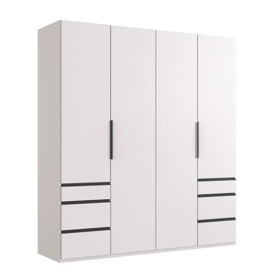 Deze 4-Deurs Kledingkast James Is Gemaakt Van Spaanplaat En Is Gepoedercoat In Een Witte Kleur. De Kast Heeft Een Strakke En Moderne Uitstraling En Past Goed In Vrijwel Iedere Slaapkamer. Binnenin De Kast Vindt U Twee Hangroedes, Twee Legplanken En 6 Lades. Door De Lange Handgrepen Zijn De Deuren Van Deze Kast Gemakkelijk Te Openen.