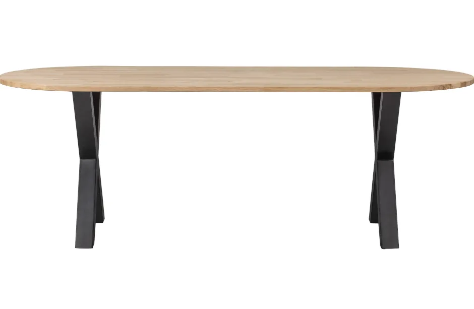 De Tafel Heeft Een Hoogte Van 75 Cm, Is 220 Cm Breed En 90 Cm Diep. Tafelpoot Tablo Alkmaar (Hxbxd) 72X79X10 Cm, Komt Ook Uit De Tablo-Collectie Van Het Nederlandse Merk Woood. De Tafelpoot Is Vervaardigd Uit 80X80X1 Mm Stalen Buis, Kd Structuur En Is Mat Zwart Gepoedercoat. De Tablo Ovaal Met Alkmaar Poot Weegt Iets Meer Dan 44 Kg En Heeft Een Draagkracht Van 150 Kg.