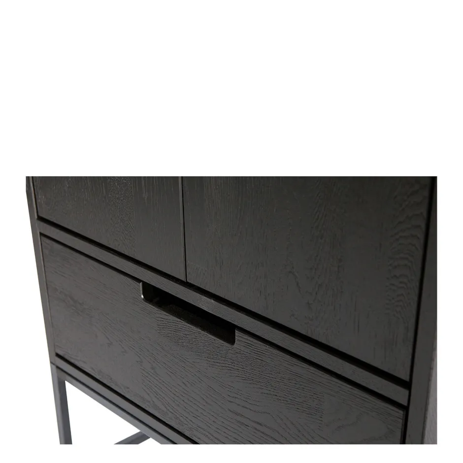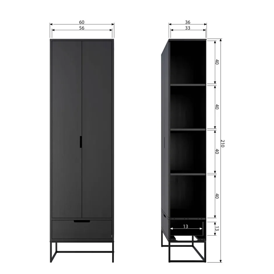 De Hoge Kast Silas Zwart Essen [Fsc] Van Het Nederlandse Merk Woood Exclusive Is Onderdeel Van De Serie Silas. Deze Serie Heeft Een Eigentijdse Moderne Uitstraling En Biedt Een Goede Basis Voor Het Interieur. Deze Hoge Kast Met Twee Deuren En Lade Is Gemaakt Van Massief Essen(Vingerlas), Heeft Een Geschuurde Afwerking Gekregen En Is Afgelakt In De Kleur Blacknight. Het Onderstel Is Van Zwart Metaal. Achter De Twee Deuren Zitten Vier Legplanken, De Hoogte Van De Opbergvakken Is 40 Cm En De Breedte Is 56 Cm. De Diepte Van De Lade Is 31 Cm En De Breedte 56 Cm.