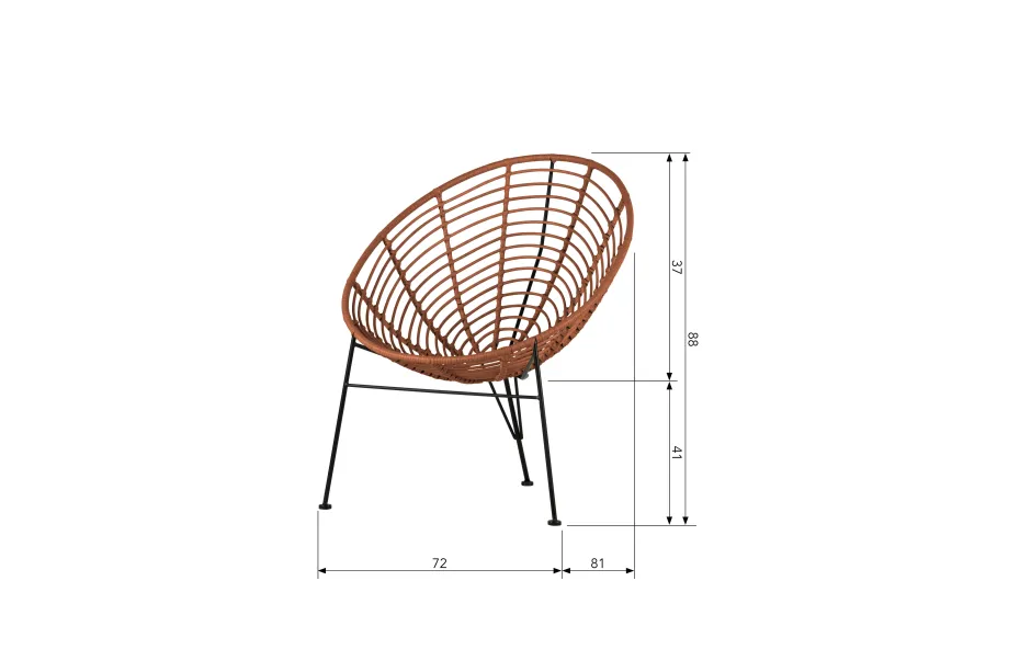 De Jane Loungestoel 88X72X81 Cm (Hxbxd) Is Een Mooie Blikvanger En Komt Uit De Collectie Van Het Nederlandse Merk Woood. De Loungestoel Is Gemaakt Van Pe Terra Kleur. Het Onderstel Van De Jane Loungestoel Is Van Metaal In De Kleur Zwart. De Afmetingen Zijn (Hxbxd) 88X72X81 Cm. De Zithoogte Is 41 Cm, De Zitdiepte Is 46 Cm En De Zitbreedte Is 45 Cm. Het Maximale Draaggewicht Per Stoel Is 150 Kg.