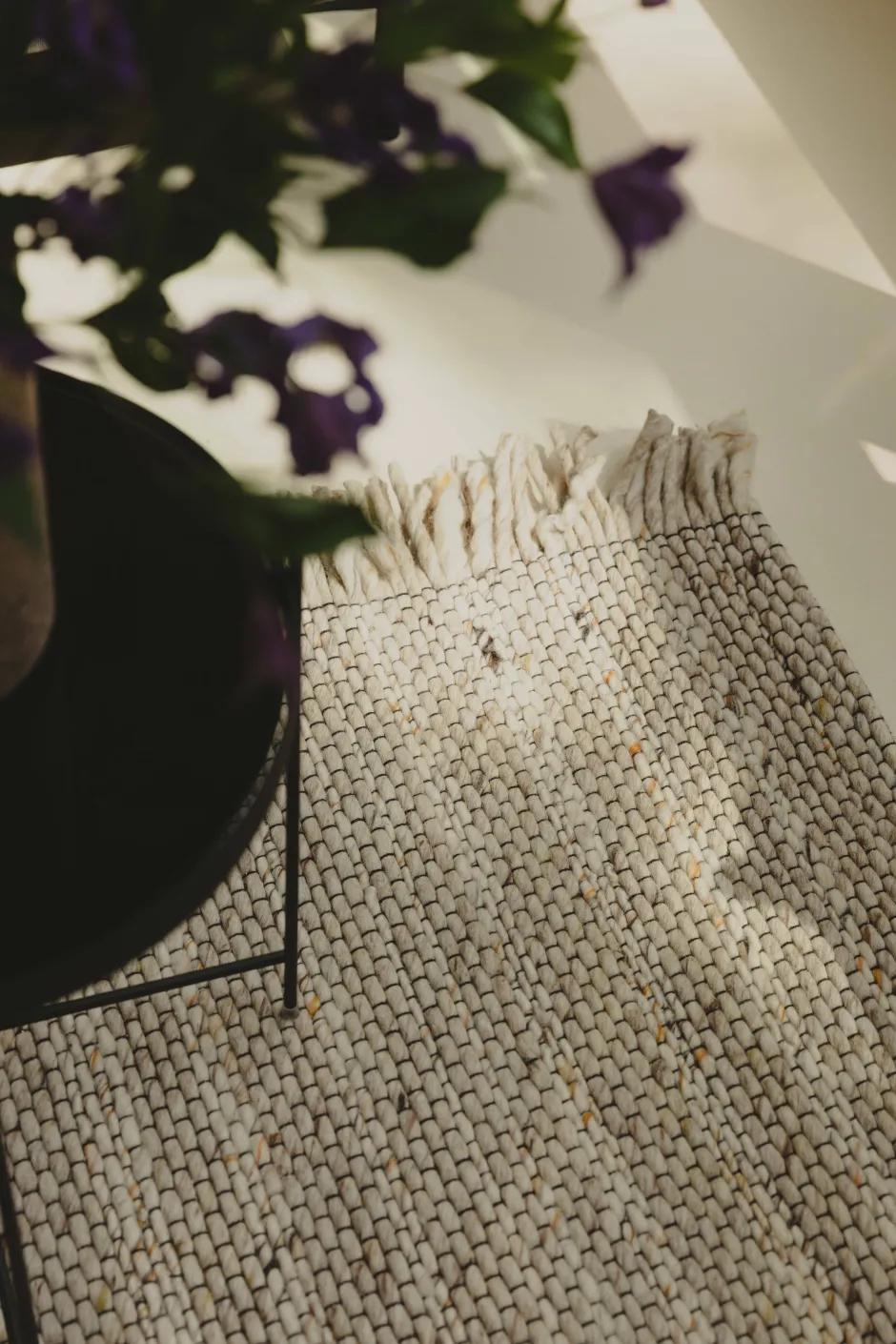 Dit Handgeweven Vloerkleed Is Van Het Merk Zuiver. Het Kleed Is Gemaakt Van Wol En Is Afgewerkt Met Franjes Langs De Zijkanten.
