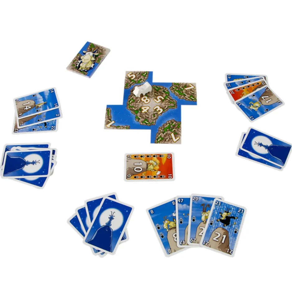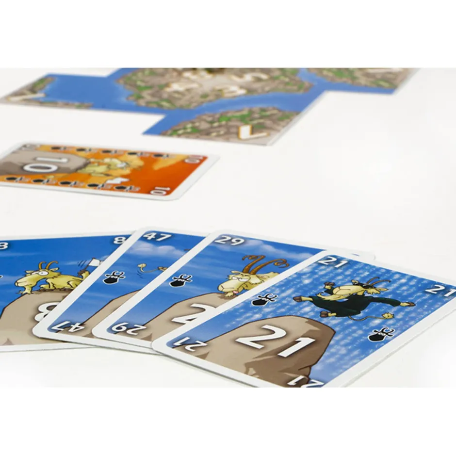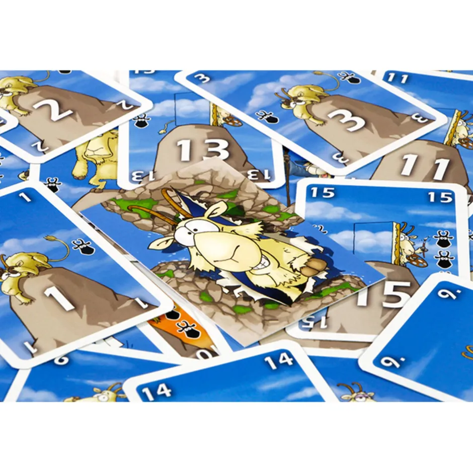 In Dit Kaartspel Proberen De Spelers Zoveel Mogelijk Geiten Te Verzamelen Zonder De Limiet Te Overschrijden. Iedere Speler Krijgt Aan Het Begin 8 Kaarten. Hij Speelt Steeds 1 Kaart, Een Slag, Open Op Tafel. De Speler Die De Kaart Met De Laagste Waarde Heeft Gespeeld, Trekt Een Heuvelkaart En Legt Die Op Tafel, Waarbij Hij 1 Van De 2 Waarden Erop Kiest. De Speler Die De Kaart Met De Hoogste Waarde Heeft Gespeeld, Wint De Slag En Start De Volgende. Dit Gaat Zo Door Totdat Alle Kaarten Zijn Gespeeld. De Heuvel Is Na 4 Slagen Afgebouwd En Bepaalt De Geitenlimiet. Wie Na 8 Slagen De Meeste Geiten Heeft Verzameld En Niet De Geitenlimiet Heeft Overschreden Wint Het Spel. Je Kunt Er Ook Voor Kiezen Om Meerdere Ronden Te Spelen En De Scores Te Noteren.Bokken Schieten Is Een Kaartspel Dat 999 Games 15 Jaar Geleden Al Succesvol Heeft Uitgebracht, Maar Nu In Een Nieuw Jasje In Eigen Beheer Uitgeeft.