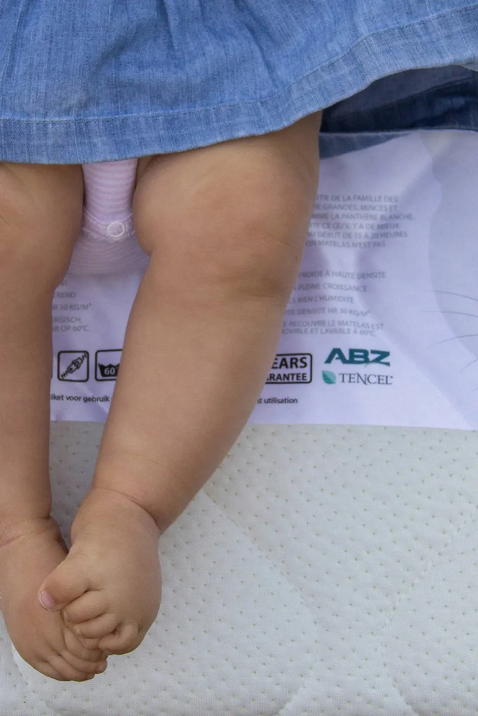 Witte Panters Behoren Tot De Familie Van De Katachtigen En Zijn Gekend Als Groot, Slim En Uniek In Hun Soort. Net Als De Witte Panter Is Ook Jouw Kindje Uniek En Verdient Je Baby Het Allerbeste. Baby’S Slapen Veel, In Het Begin Wel Tot 15 A 20 Uur Per Dag. Daarbij Is Een Goede Matras Essentieel Voor Een Goede Nachtrust En De Ontwikkeling Van Je Kind. De Witte Panter Matras Bestaat Uit Koudschuim Met Een Hoge Densiteit. Ideaal Voor Baby’S In Volle Groei. Daarenboven Is Deze Matras Bijzonder Vochtregulerend En Dus Geschikt Voor Baby’S Die Hevig Transpireren. De Kern Bestaat Uit Koudschuim Hr30 Kg/M3. De Bestikte Tencel Hoes In Antiallergisch, Afneembaar En Wasbaar Op 60°C.