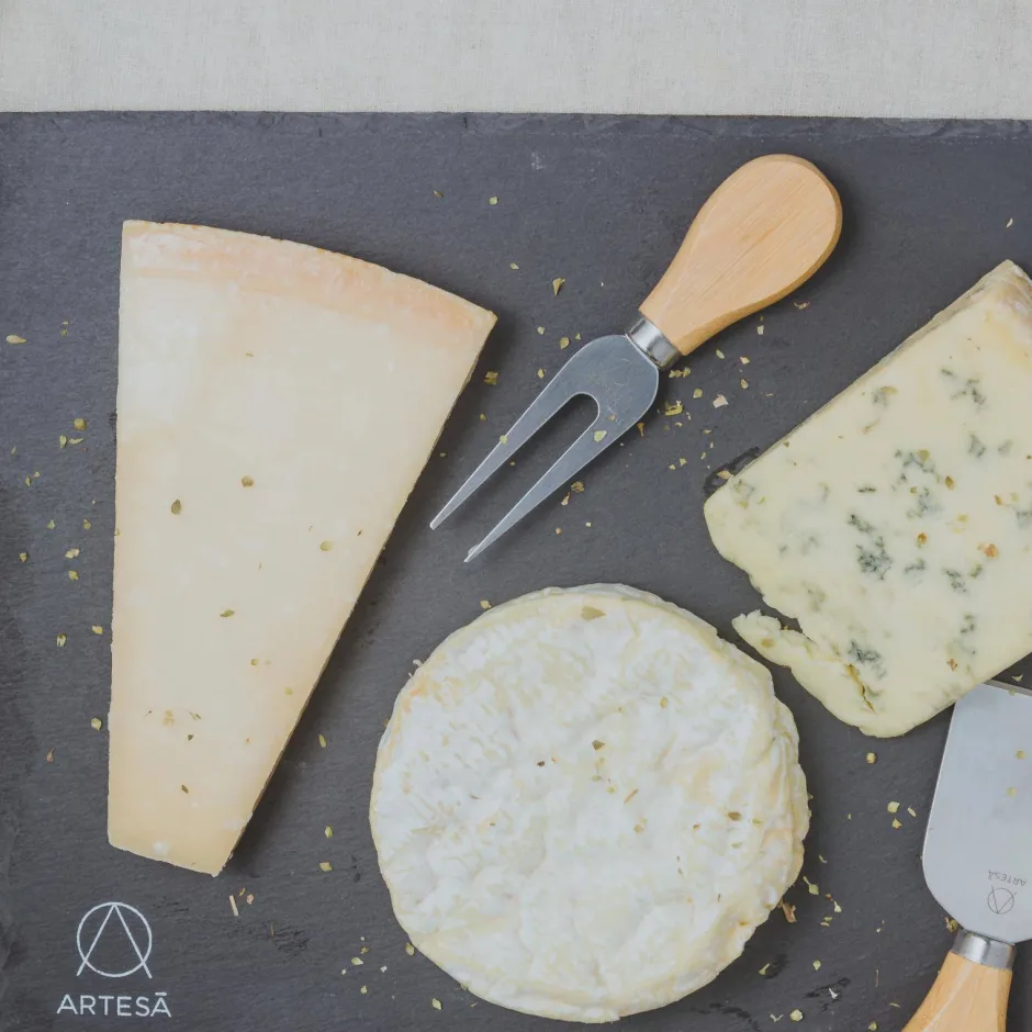 Kaasplanken Zijn De Perfecte Aanvulling Op Sociale Evenementen En Wat De Gelegenheid Ook Is, Deze Serveerplank Van Leisteen Is Perfect Voor Overheerlijke Kazen. Leisteen Is Een Geweldige Manier Om Je Kaas Op Een Lagere Temperatuur Te Houden Wanneer Hij Op Tafel Wordt Gezet. Met De Royale Afmetingen Kun Je Een Selectie Kazen Serveren, Samen Met Fruit En Antipasto’S. De Set Wordt Geleverd Met Drie Kaasmessen, Compleet Met Roestvrijstalen Lemmeten En Acaciahouten Handvatten, Waarmee Je Drie Verschillende Soorten Kazen Kunt Aanpakken: Het Beitelmes Voor Harde Kaas, Het Hartvormige Mes Voor Zachte Kaas, En De Kaasvork Kruimelige Kaas. Wil Je Dat Je Gasten Weten Welke Kaas Welke Is? Waarom Gebruik Je Geen Krijtje Om Kleine Notities Direct Op Het Leitje Te Maken? Een Fantastische Manier Om Persoonlijkheid Toe Te Voegen. De Roestvrijstalen Lemmeten Zijn Stevig En Roestbestendig, Zodat Ze Nog Vele Sociale Gelegenheden Mee Zullen Gaan. Roestvrij Staal Staat Er Om Bekend Dat Het Bestand Is Tegen De Natuurlijke Kleverigheid Van Kaas, Zodat Er Geen Geknoei Ontstaat. Acaciahout Is Een Natuurlijke Schoonheid, Met Een Rijke Nerf Die Opvalt Op Elke Eettafel. De Houten Handgrepen Geven De Set Extra Karakter. Leisteen Is Een Fantastische Optie Als Het Gaat Om Het Presenteren Van Kaas. Het Natuurlijk Koele Oppervlak Is Ideaal Voor Zuivel En Omdat Het Stevig Is, Biedt Het Ondersteuning Wanneer Je Zachte Kazen Snijdt. Dankzij Het Royaal Formaat (35 Cm X 25 Cm) Kun Je Deze Voedselveilige Serveerplank Gebruiken Voor Allerlei Heerlijke Gerechten, Zoals Antipasto, Knapperig Brood En Tapaslekkernijen. De Artesa Collectie Is Gemaakt Om Indruk Te Maken. Dit Zorgvuldig Samengestelde Assortiment Van Apparatuur Voor Het Bereiden En Serveren Van Voedsel Combineert Ambachtelijk Vakmanschap Met Een High-End Design Esthetiek.Mooi Servies Voor Elke Gelegenheid! Uniek, Trendy En Kwalitatief Hoogstaand Servies Dat Entertainen Gemakkelijk En Mooi Maakt.