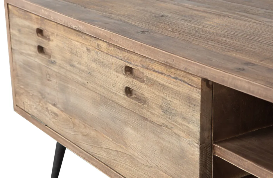 Dit Stoere Maddox Meubel Komt Uit De Collectie Van Het Nederlandse Merk Basiclabel. Het Maddox Tv-Meubel Is Een Ware Eyecatcher Door De Bovenhelft Van Robuust, Gerecycled Hout. De Kenmerken Van Grof Gerecycled Hout Zie Je Terug In De Knoesten, Nerven En Scheuren In Het Oppervlakte. Het Tv-Meubel Heeft Een Lichte Transparante Waslaag Ter Bescherming, Maar Vraagt Om Zeer Zorgvuldig Onderhoud. Vocht Trekt Snel Het Hout In, Wat Kan Zorgen Voor Lelijke Kringen.