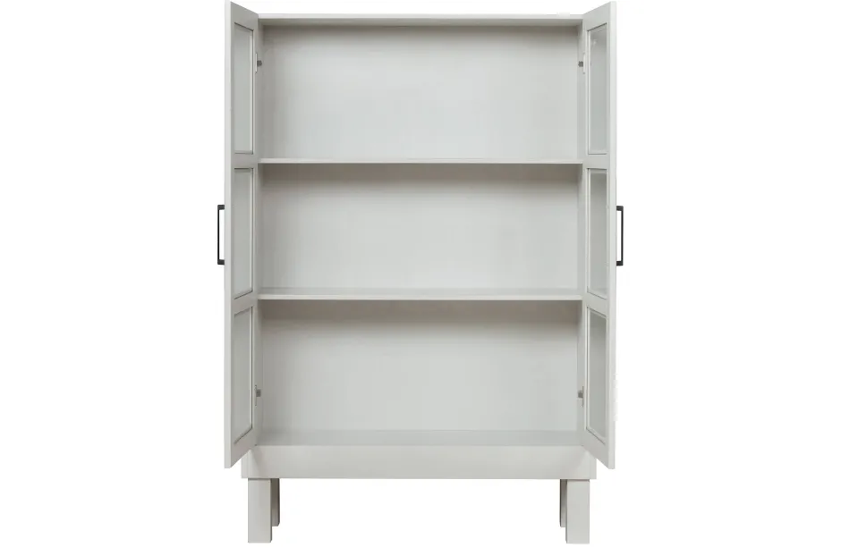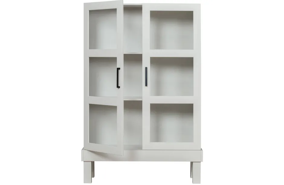 Bonk Is Een Eigentijdse, Stoere Vitrinekast Uit De Collectie Van Het Nederlandse Merk Whitelabel. Deze Vitrinekast Is Vervaardigd Uit Grenenhout, Fsc Gecertificeerd, En Heeft Een Mist Kleurige Finish Gekregen. Bonk Is Voorzien Van 3 Legplanken, Waardoor Deze Kast Genoeg Ruimte Biedt Om Accessoires Te Plaatsen. Deze Legplanken Bevinden Zich Achter Twee Deuren, Per Deur Voorzien Van 3 Glazen Ruiten. De Deuren Zijn Voorzien Van Een Stoere, Zwarte Metalen Greep. Door Het Tijdloze Design Past Deze Kast In Ieder Interieur Thuis.