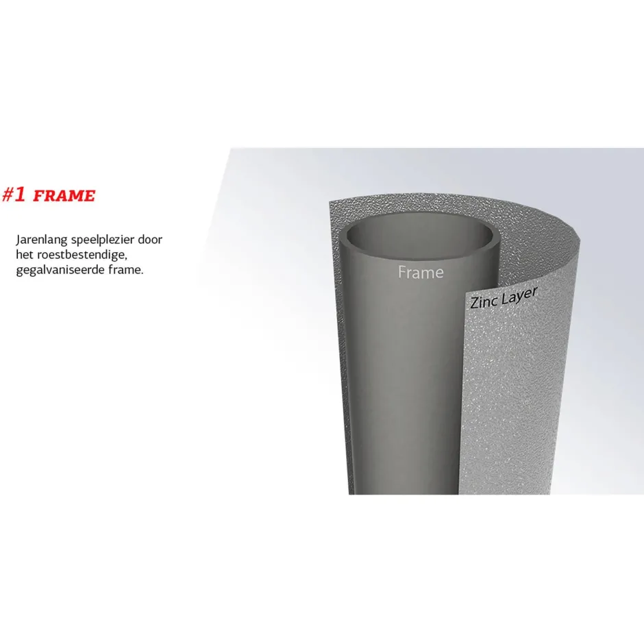 Het Frame Van De Favorit Bestaat Uit Dikke Buizen Met Een Grote Diameter. Daardoor Heeft De Favorit Trampoline Een Lange Levensduur. Het Frame Is Roestbestendig En Voorzien Van Een Degelijke Zinklaag. Het Frame Is Gemakkelijk Te Assembleren.