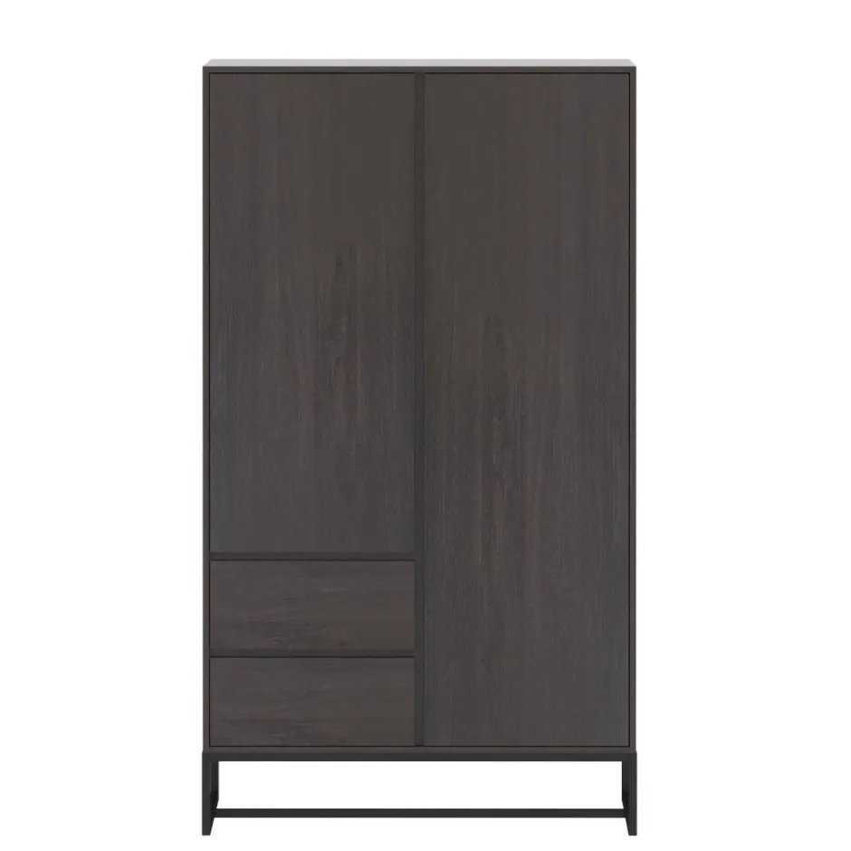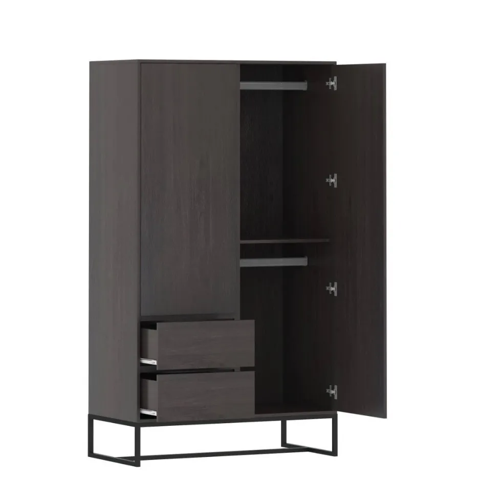 Kledingkast Toscane Heeft Een Donkergrijze Kleur Met Een Zichtbare Houtnerf. De Zwarte Metalen Pootjes Geven De Kledingkast Een Stoere Touch En Een Eigentijds En Trendy Uiterlijk.