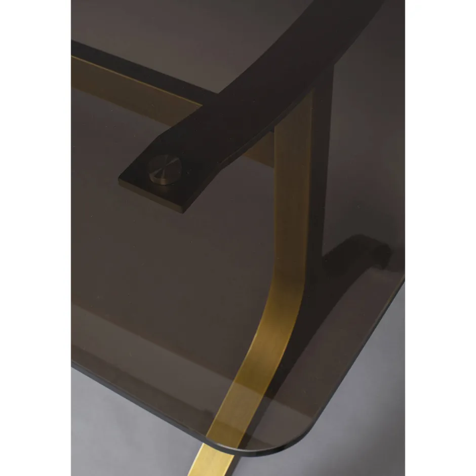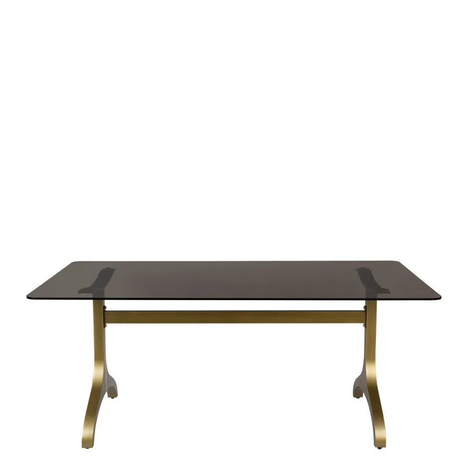 Tafel Sansa Van Dutchbone Is Een Prachtige Glazen Tafel Gemaakt Van Gehard Rookglas In Combinatie Met Een Elegant, Messing Gekleurd Onderstel. Deze Rechthoekige Tafel Valt Op Door Het Mooie Gekleurde Glas En De Elegante Afgeronde Hoeken. Extra Voordeel Van Deze Forse Glazen Eettafel Is Dat Je Eetfauteuils Mooi In Het Zicht Blijven.