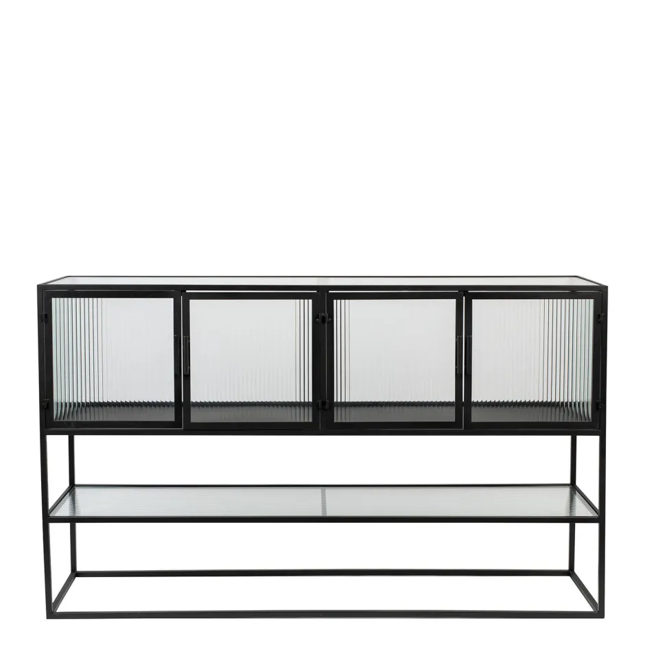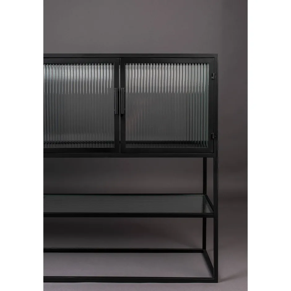De Vitrinekast Boli Van Het Merk Dutchbone Staat Met Haar Zwart Gepoedercoated Ijzeren Frame Stijlvol In Je Woning. De Kast Is Van Geribbeld Gehard Glas En De Deurtjes Hebben Een Magnetische Sluiting. De Combinatie Van Deze Materialen Zorgen Voor Een Luxe, Maar Ook Eenvoudige Uitstraling. Hierdoor Past Het In Verschillende Woonstijlen!