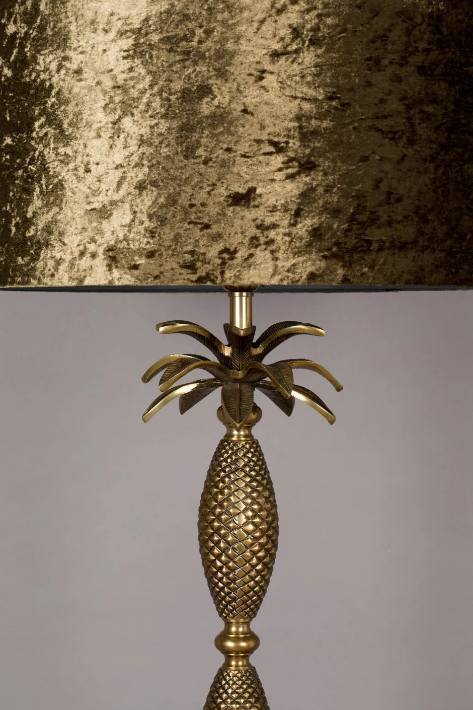 Dutchbone Pina Schemerlamp Is Niet Voor Doetjes. Deze Opvallende, Messingkleurige Staande Lamp Is Echt Een Blikvanger In Je Interieur. Hij Geeft Niet Alleen Prachtig, Gezellig Licht Met Zijn Velours Goudkleurige Lampenkap, Maar De Staander Van Gestapelde Ananassen Zorgt Ook Zeker Voor Een Exotisch, Vrolijk Tintje In Huis.