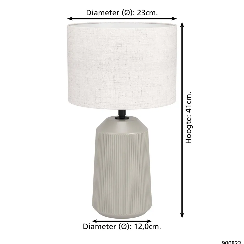 Met Zijn Trendy Design En Compacte Formaat Is Tafellamp Capalbio Van Eglo Perfect Voor Elke Ruimte. De Zandkleurige Voet In Combinatie Met De Elegante Witte Kap Stralen Een Tijdloze Charme Uit. De Lamp Heeft Een Stevige Voet Met Een Geribbeld Motief, Gemaakt Van Hoogwaardig Keramiek Aangevuld Met Een Stijlvolle Kap Van Textiel. De Combinatie Van Keramiek En Textiel Geeft De Lamp Een Eigentijdse Uitstraling. De Eglo Capalbio Tafellamp Is De Perfecte Aanvulling Voor Een Natuurlijke Of Moderne Woning. Met Zijn Tijdloze Uitstraling En Harmonieuze Combinatie Van Materialen Voegt Capalbio Moeiteloos Stijl Toe Aan Je Interieur.