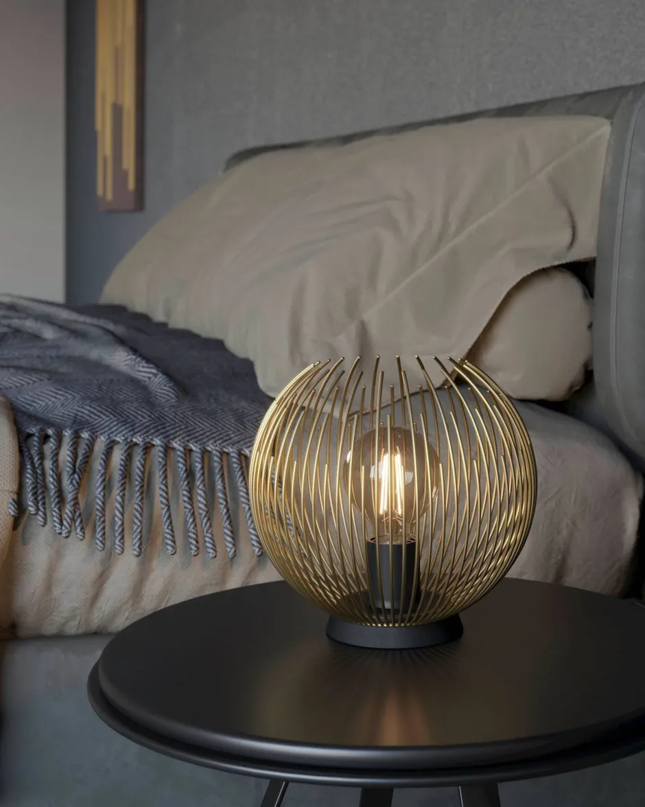 Origineel En Een Mooie Belijning, Dat Is Tafellamp Venezuela Van Eglo. Dit Pareltje Weet In Elk Interieur De Show Te Stelen. Deze Lamp Is Ideaal Om Jouw Interieur Een Chic En Smaakvol Tintje Te Geven. Tafellamp Venezuela Is Door Zijn Zwart Met Goudkleur Eenvoudig Toepasbaar In Ieder Interieur. Je Schakelt Venezuela Eenvoudig Aan En Uit Via Een Knop Verwerkt In Het Snoer.