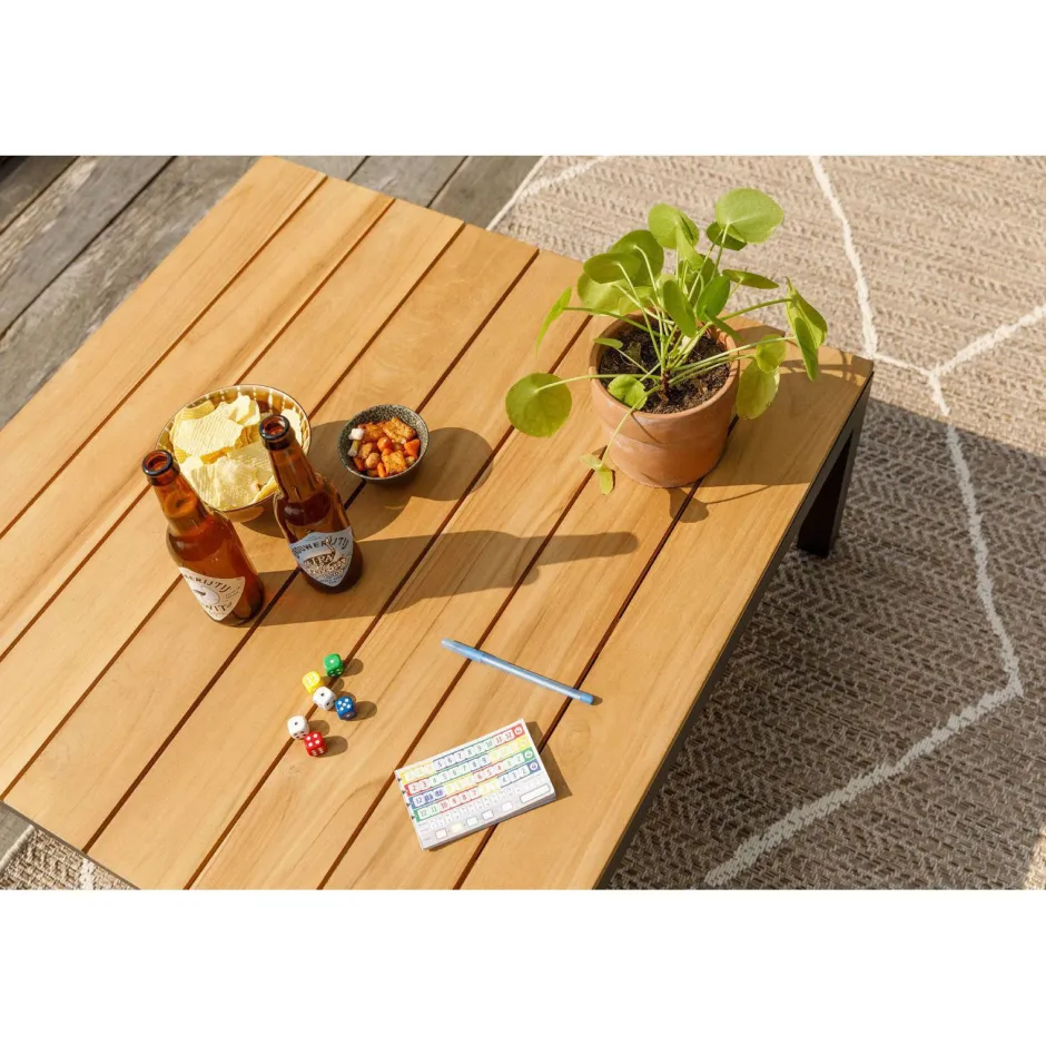 De Basis Van Deze Loungeset Is Een Duurzaam Aluminium Frame Met Een Rand Van Teak Hout Aan De Achterzijde.