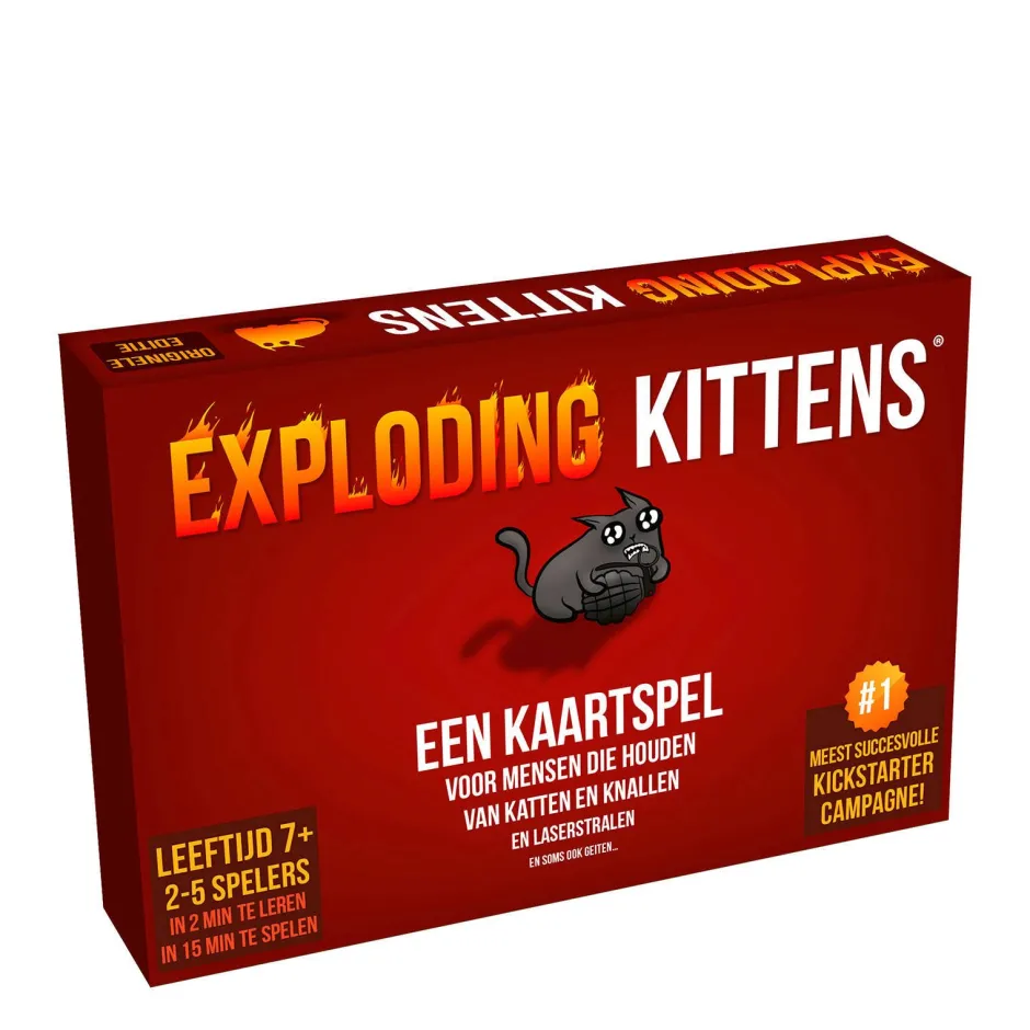 Nederlandstalige Versie Van Het Populaire Kaartspel Exploding Kittens. Exploding Kittens Is Een Fantastisch Kaartspel Voor Mensen Die Van Katten, Explosies, Laserstralen En Soms Ook Van Geiten Houden. Dit Tactische Spel Is Een Variant Van Russisch Roulette, Maar Dan Met Exploderende Kittens. Je Neemt Kaarten Van De Stapel Totdat Je Een Van De Gevreesde Exploderende Kittens Trekt. Dan Heb Je Meteen Verloren. Met Alle Andere Kaarten Kun Je Jezelf Verdedigen, Aanvallen, Een Beurt Overslaan Of De Katten Afleiden. Het Doel Van Het Spel Is Net Zo Lang Te Overleven Totdat Je De Laatste Speler Bent. Kenmerken: – De Box Bevat 56 Kaarten – Originele Editie – Nederlandse Editie – Eenvoudig Te Leren – Dit Familievriendelijke Partyspel Was Het Meest Succesvolle Project Ooit Op Kickstarter – Deze Box, Zoals 99.99% Van Alle Boxen, Meowt Niet!