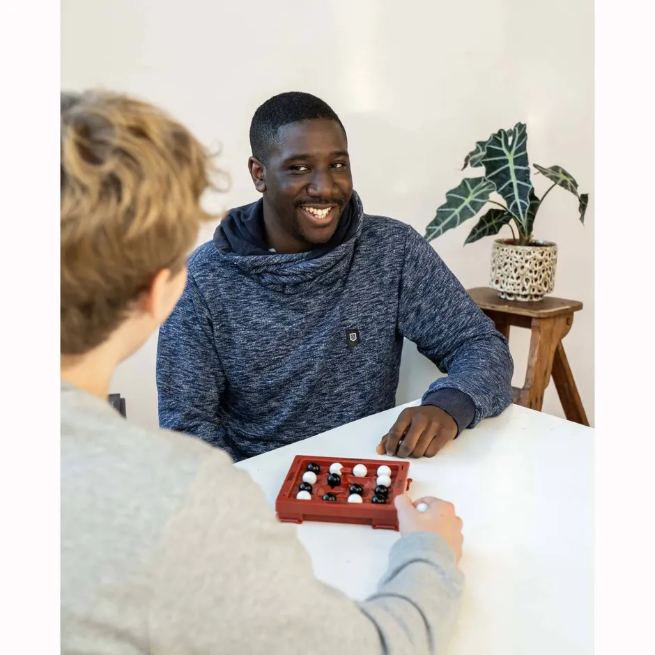 Orbito Is Een Snel Strategiespel Voor 2 Spelers Met Heel Eenvoudige Regels. Makkelijk Te Leren, Moeilijk Te Winnen! Leg Om De Beurt Een Van Je Knikkers Op Het Spelbord En Probeer 4 Knikkers Van Jouw Kleur In Een Horizontale, Verticale Of Diagonale Lijn Te Krijgen Op Het Bewegende Speelbord. Maar Let Op, Om Je Beurt Te Beeindigen, Moet Je De Orbitoknop Indrukken. Hierdoor Verschuiven Alle Knikkers 1 Positie In Hun ‘Orbit’! Dwarsboom Ook De Strategie Van Je Tegenstander Door Tijdens Jouw Beurt Een Van Zijn Knikkers Te Verplaatsen Naar Een Aangrenzende, Vrije Positie. Maak Een Horizontale, Verticale Of Diagonale Lijn Van 4 Knikkers In Jouw Kleur En Win!