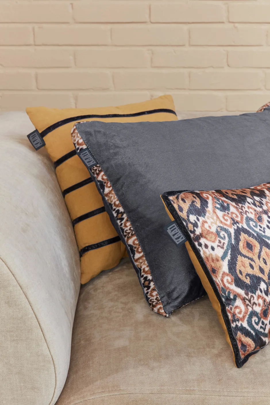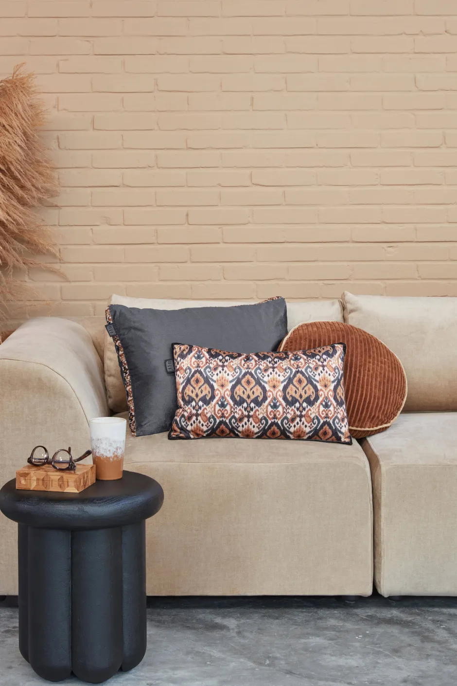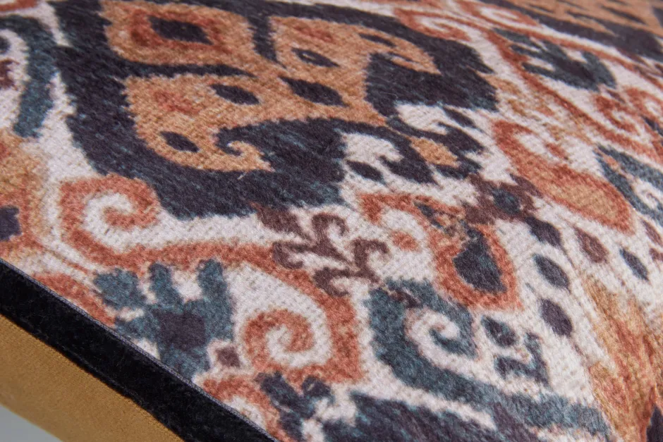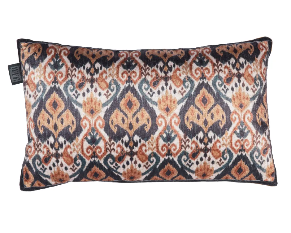 Sierkussen Kensi Van Kaat Amsterdam Met Ikat Motief Past Perfect Bij Een Bohemian Interieur. In Dit Sierkussen Vind Je Veel Aardse Kleuren, Zoals Terra, Zand, Zwart, Antraciet En Diverse Bruintinten. De Ikat Motieven Zijn Geprint Op Glanzend Velvet Voor Een Elegante Uitstraling. De Achterzijde Heeft Een Effen Caramel Bruine Kleur. De Voorkant Van Sierkussen Kensi Is Gemaakt Van 100% Polyester Velvet En De Achterkant Van 100% Katoen. Het Formaat Is 30 X 50 Cm. Het Kussen Heeft Aan De Onderkant Een Ritssluiting En Wordt Geleverd Inclusief Een Veerkrachtig Polyester Binnenkussen. Leuk Detail: Het Sierkussen Heeft Een Gouden Puller Aan De Ritssluiting In De Vorm Van Een Amsterdams Grachtenpandje. Het Kussen Is Niet Geschikt Voor De Wasmachine En Droger.