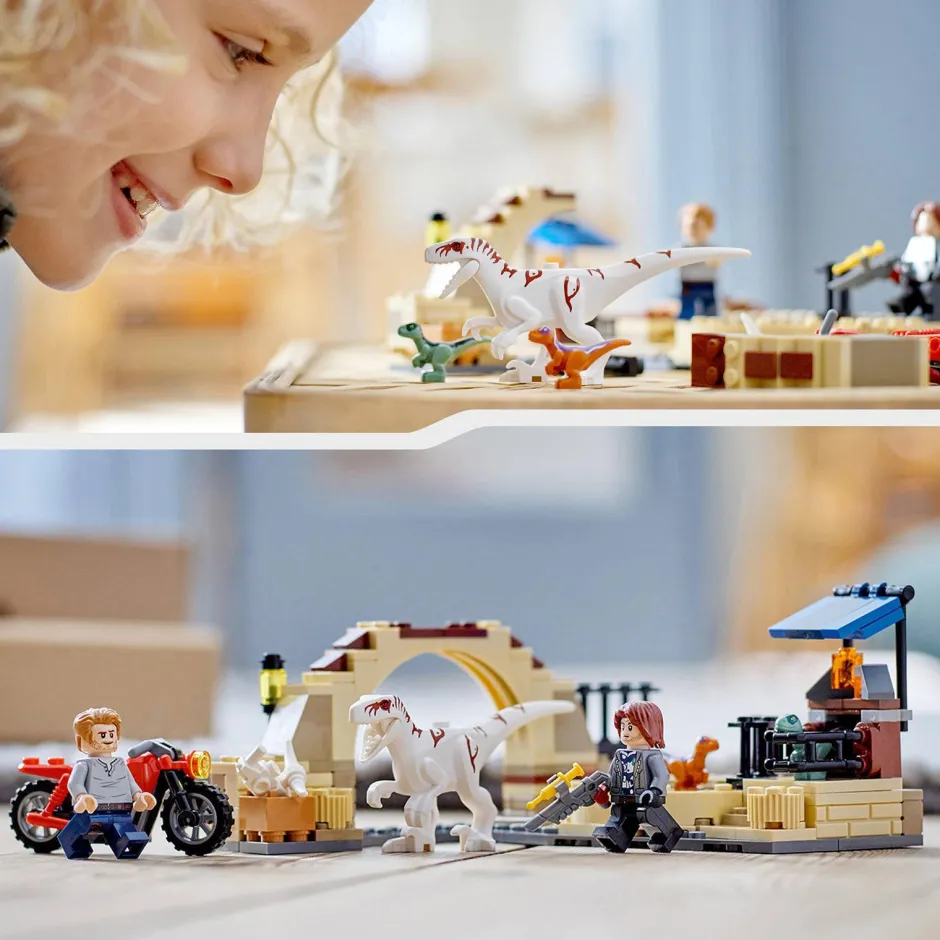 Bereid Je Voor Op Speelplezier Boordevol Actie Met Deze Geweldige Speelset, Geinspireerd Op De Film Jurassic World: Dominion Met Deze Atrociraptor Dinosaurus Motorachtervolging (76945) Bouwset. Met Dit Leuke Lego Constructie Speelgoed Kunnen Kinderen Vanaf 6 Jaar De Bloedstollende Achtervolging En Ontsnapping Uit De Film Naspelen En Herbeleven. Zal Het Owen Lukken Om Aan De Achtervolging Van De Atrociraptor Te Ontsnappen Terwijl Hij Op Zijn Motor Wegrijdt? Hopelijk Kan Rainn Delacourt Hem Helpen Ontsnappen Door De Dino Met Zijn Verdovingsgeweer Te Kalmeren. Deze Set Is Gebaseerd Op Een Van Stenen Gebouwde Markt Met Een Instortende Muur Die Makkelijk Opnieuw Opgebouwd Kan Worden. Daarnaast Bevat De Speelset Minifiguren Van Owen Grady En Rainn Delacourt, Een Speelgoedmotor En Een Draaiende Gevechtsarena Voor 2 Kleine Dinofiguren. Bij Dit Lego Jurassic World Speelgoed Horen Stapsgewijze Instructies, Zodat Zelfs Beginners Kunnen Genieten Van Het Bouwproces. Er Zijn Sets Om Jurassic World-Fans Van Alle Leeftijden Te Verrassen, Of Ze Nu Beroemde Scenes Willen Naspelen, Hun Eigen Verhalen Willen Bedenken Of De Authentieke Modellen Willen Bouwen En Neerzetten. Deze Speelset Is Een Ideaal Cadeau Voor Creatieve Kinderen Vanaf 6 Jaar Die Wel Een Verrassing Verdienen. Afmetingen: Ca. 6 Cm Hoog, 17 Cm Breed En 13 Cm Diep. Bevat 169 Onderdelen.