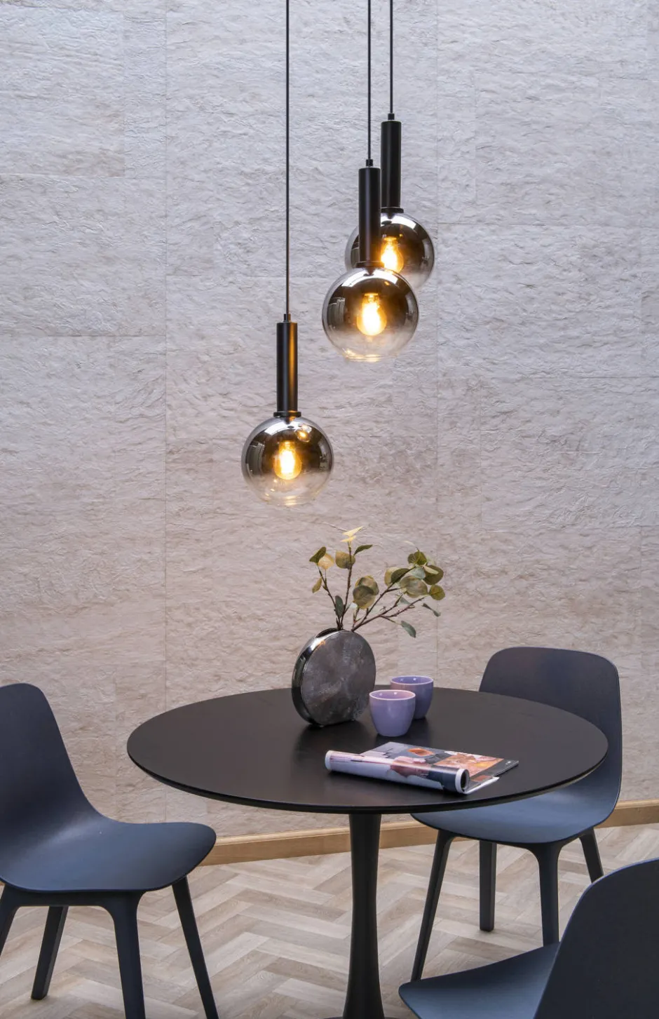 Haal De Grandeur Van Een Cosy Lounge Of Trendy Restaurant In Huis. Met Marius Zit Het Qua Sfeer En Gezelligheid In Ieder Geval Goed. Deze Hanglamp Omvat Drie Lichtbronnen In Fume Glas. De Glazen Bollen Kan Je Op Verschillende Hoogten Hangen Voor Een Optimaal Optisch Effect. Door De Fijne Bedrading Vangen De Lichtbronnen Alle Aandacht. Deze Hangende Lamp Past Perfect In Je Salon Of Eetkamer. Sluit Marius Aan Op Een Externe Dimmer Voor Het Ideale Licht Op Elk Moment. De Pendellamp Reikt Tot Maximaal 150 Centimeter Lang.