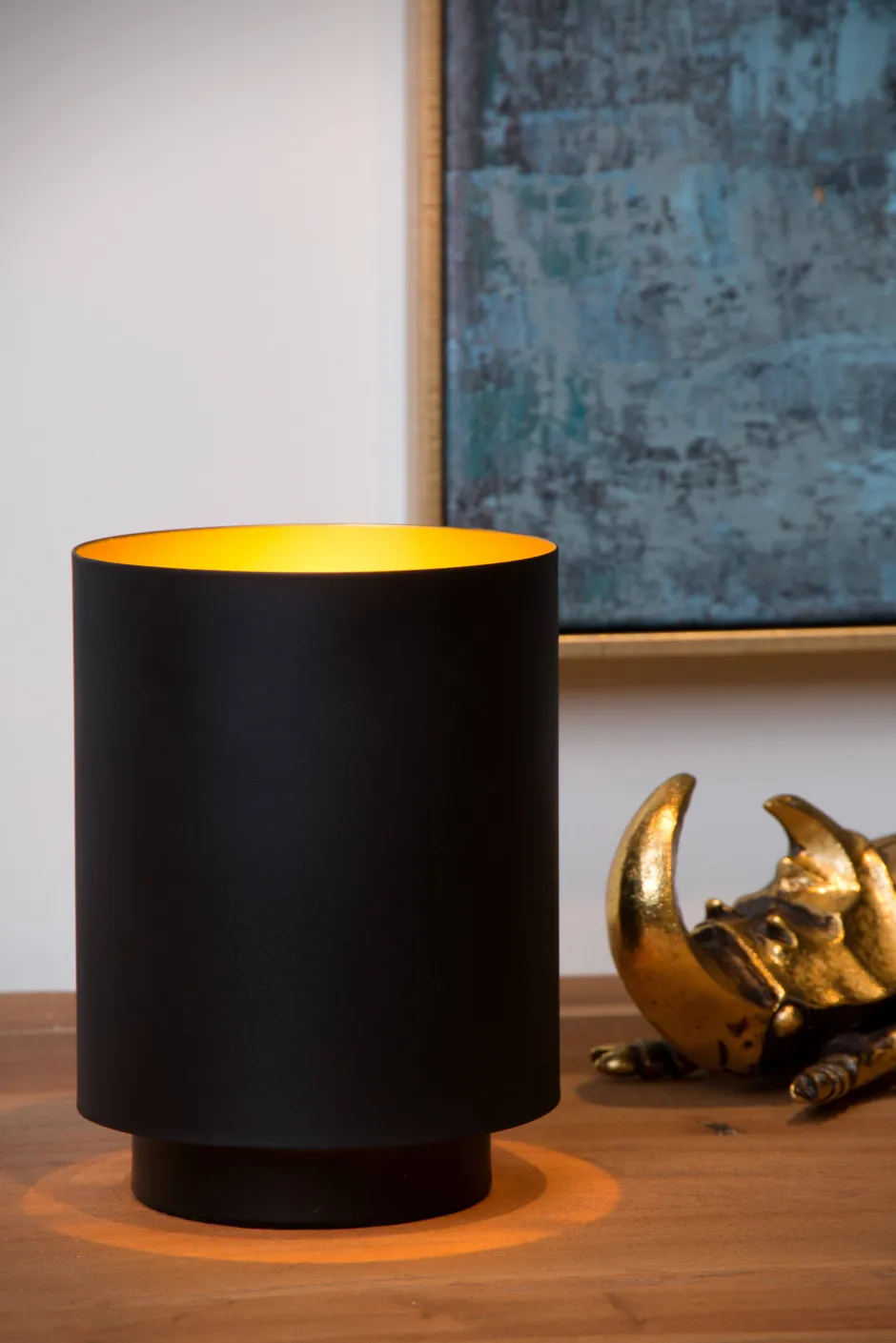 Wake Up Little Suzy. Zou Dat Niet Wat Zijn? Dat Je Deze Tafellamp Eenvoudigweg Aanschakelt Door Er Liedjes Voor Te Zingen? Suzy Is Slechts 16 Centimeter Hoog En Heeft Een Diameter Van 12 Centimeter, Maar Ze Staat Haar Mannetje. Vervaardigd Uit Zwart, Hoogwaardig Metaal En Met Een Binnenzijde In Matgoud Straalt Ze Een En Al Sfeer Uit. Dat Reflecteert Ze Op Het Oppervlak Waarop Je Haar Plaatst. Zowel In Deze Ronde Variant, Als In Het Vierkante Model. Combineer Suzy Met De Juiste Ledlichtbron En Schakel Deze Tafellamp Aan En Uit Via De Schakelaar Verwerkt Op Het Snoer.