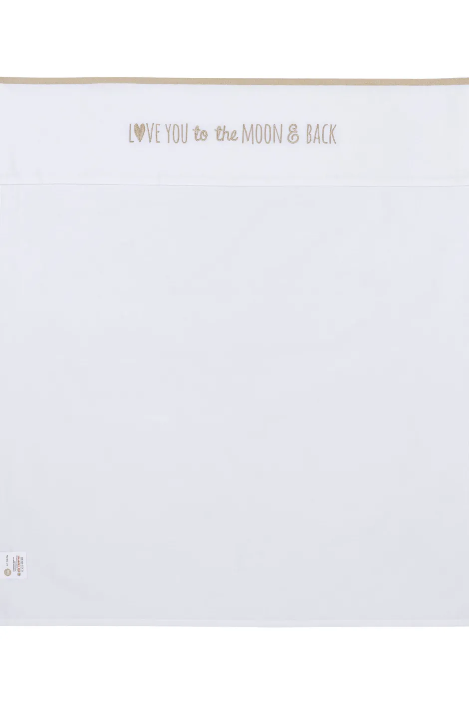 Het Witte Lakentje Heeft Een Gekleurde Bies Op De Omslagstrook Met De Tekst ‘Love You To The Moon & Back’. En Daar Is Natuurlijk Niets Aan Gelogen.