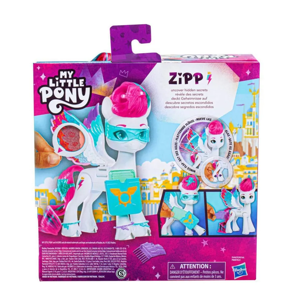 Ontdek Magische Geheimen Met Het Speelgoed My Little Pony Zipp Storm Met Verrassingsvleugels! Zipp Storm Is Een Rebelse Prinses Die Graag Mysteries Onderzoekt In De Serie My Little Pony: Make Your Mark. Knijp In De Achterste Benen Van De Figuur Om Haar Vleugels Op En Neer Te Laten Gaan En De Verrassingskleuren Te Zien Aan Een Zijkant. Houd Het Vergrootglas (Een Decoder) Boven De Vleugels Van Zipp Storm Om Verborgen Cutie Mark-Ontwerpen Te Ontdekken! De Set Bevat 10 Accessoires Geinspireerd Op Het Personage Om Verhalen Te Bedenken. Maak Zipp Storm Klaar Om Een Magisch Mysterie Op Te Lossen Door Haar Zonnebril Op Te Zetten En Haar Namaaktablet In Haar Draagtas Te Stoppen. Deze My Little Pony-Pop Is Een Witte Pegasus-Figuur Van 14 Cm Met Een Bliksemschicht Als Cutie Mark Aan Een Kant. De Figuur Heeft Zacht, Lang Roze Haar En Een Kam Om Haar Naar Hartenlust Te Stylen! Zowel Nieuwe Als Oude Fans Kunnen Avonturen Beleven Met Het Kinderspeelgoed Geinspireerd Op De My Little Pony-Film En -Serie. Ideaal Als Verjaardagsgeschenk Voor Meisjes En Jongens Vanaf 5 Jaar.