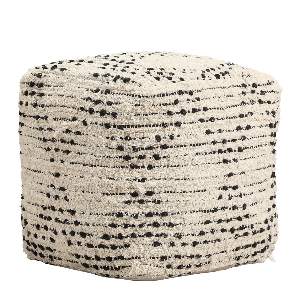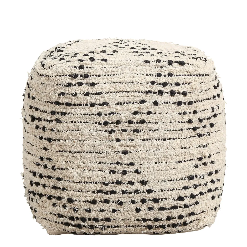 Poef Qala Is Niet Alleen Fijn Als Extra Zitplek Of Voetensteun, Maar Is Ook Een Echte Eyecatcher In Je Interieur! De Vierkante Poef Heeft Een Volumineus Uiterlijk En Een Zwart Stipjes Patroon In Ruit Vorm. Dit Geeft Qala Een Speels En Vrolijk Karakter. Qala Voelt Zich Thuis In Vrijwel Iedere Woonstijl En Geeft Je Woonkamer Net Even Iets Extra’S. Poef Qala Is Ook Verkrijgbaar In De Kleur Ivoor/Roze. Je Shopt De Qala Poef Nu In De Collectie Van Nous Living. Voor Welke Ga Jij?