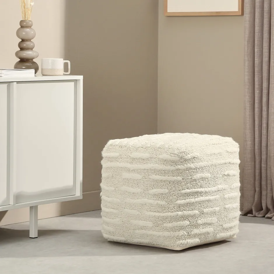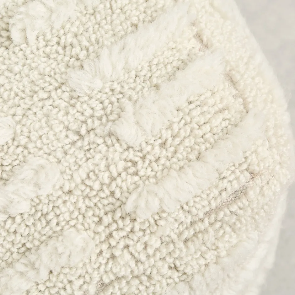 Poef Tuff Is Vervaardigd Uit Getuft Wol. Deze Techniek Zorgt Voor Een Hoogpolig Effect. Dit Maakt De Poef Aaibaar En Zacht. Daarnaast Voelt Wol Ook Lekker Warm Aan.